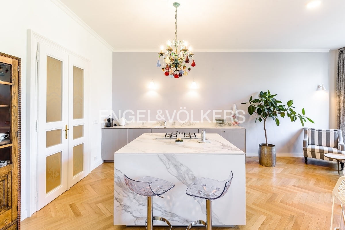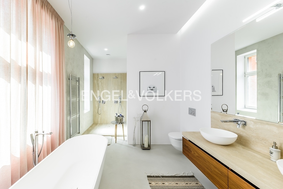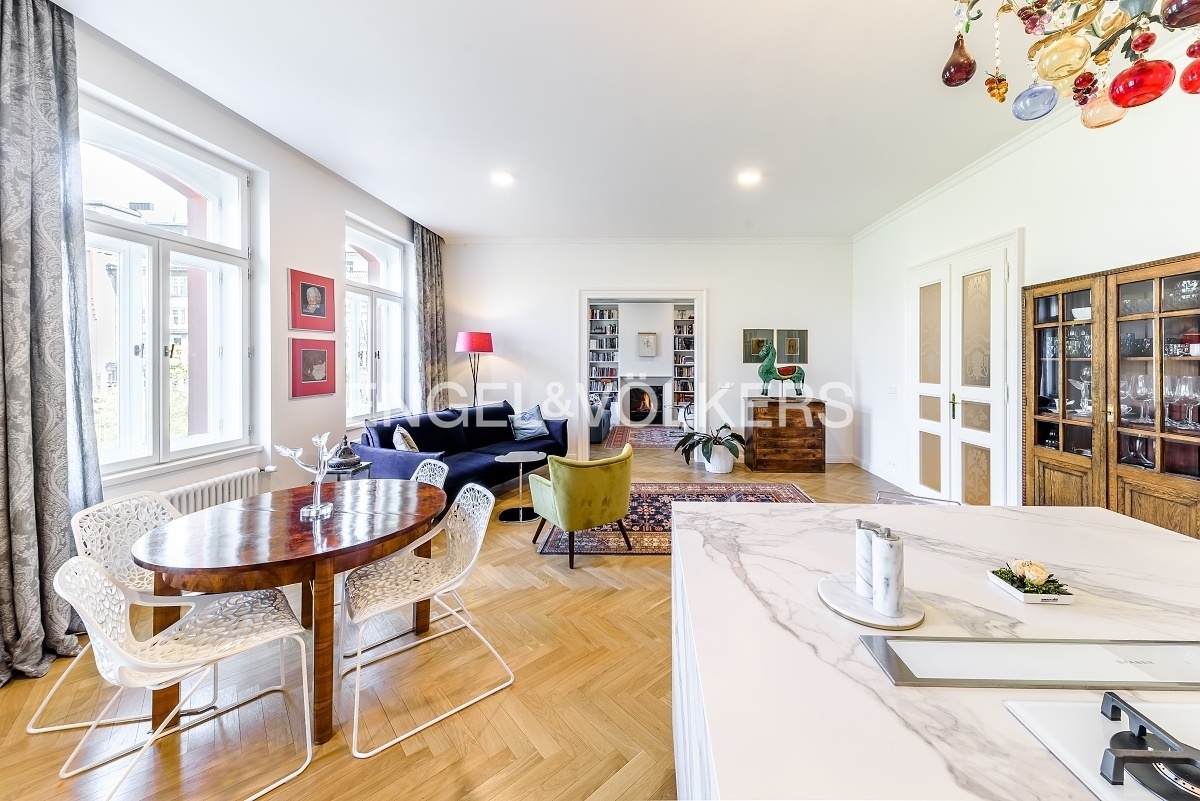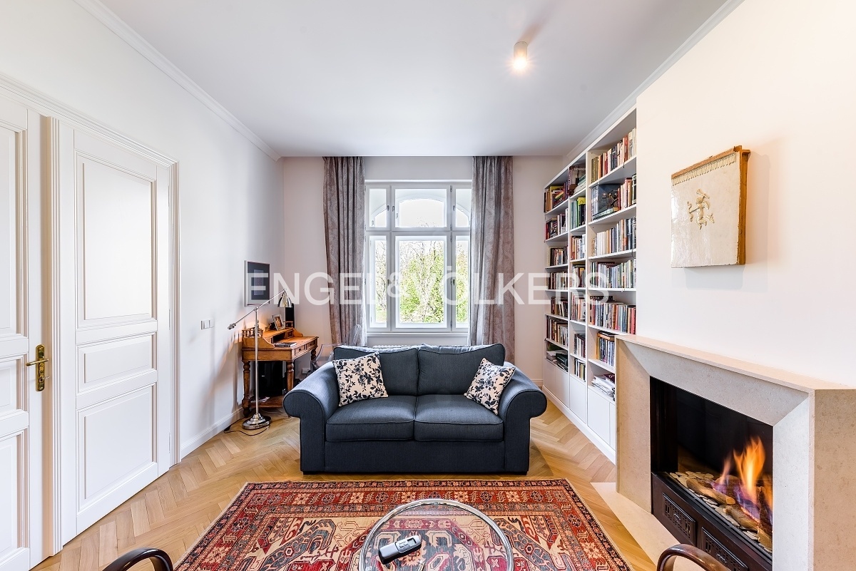 V jedné z nejoblíbenějších rezidenčních lokalit v Praze je nyní nabízen nákladně zrekonstruovaný velkoryse řešený byt s dispozici 3+kk plně vybavený luxusním nábytkem. Lokace historického činžovního domu umožňuje uklidňující výhledy do sluncem zalitých Riegerových sadů.Byt je prošpikovaný luxusními materiály od dubových parket, přes ořechové obklady, mramorem obloženého krbu až po velkoformátové desky přírodního kamene, to vše osvětlují ručně dělaná svítidla.Privátní část bytu je orientována do vnitrobloku; tvoří ji prostorná ložnice s francouzským oknem, vlastní šatnou a en-suite koupelnou s volně stojící vanou i luxusním sprchovým koutem.Dispozičně se byt skládá s prostorné předsíně s vestavěnými skříněmi, velkorysého obývacího pokoje s luxusní kuchyní plně vybavenou spotřebiči Smeg, relaxační místnosti s plynovým krbem, kterou je možné využívat také jako pokoj pro hosty, technické místnosti s pračkou i sušičkou a hostovské koupelny s toaletou a sprchovým koutem. K bytu je možné si pořídit 1-2 parkovací stání v areálu blízkého Sokola za příplatek.