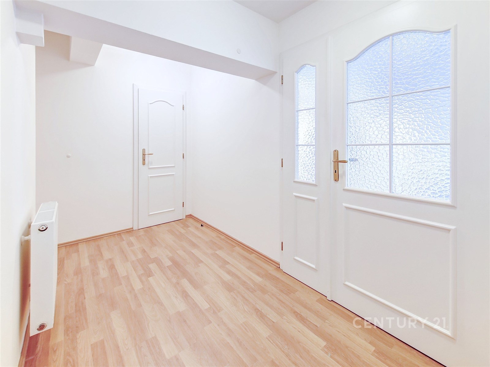 Za vstupními dveřmi se nachází prostorná předsíň, ze které je vstup do samostatné koupelny se sprchovým koutem a oddělené toalety, kde je umístěn plynový kotel a prostor pro pračku a dále do místnosti, která může sloužit jako menší domácí pracovna nebo šatna.