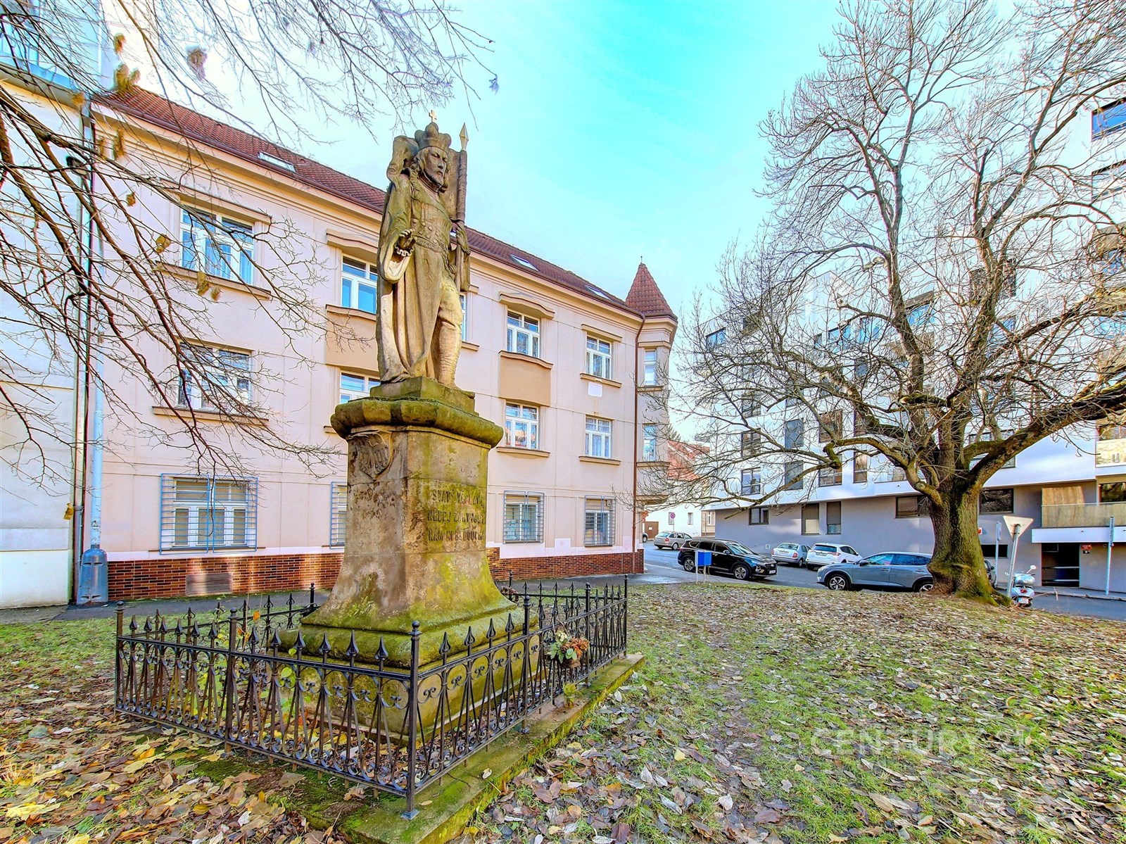 Střešní okna zajišťují dostatek denního světla v celém bytě. Parkování je možné na ulici v rámci modré zóny, případně lze zajistit parkovací místo v domě naproti.