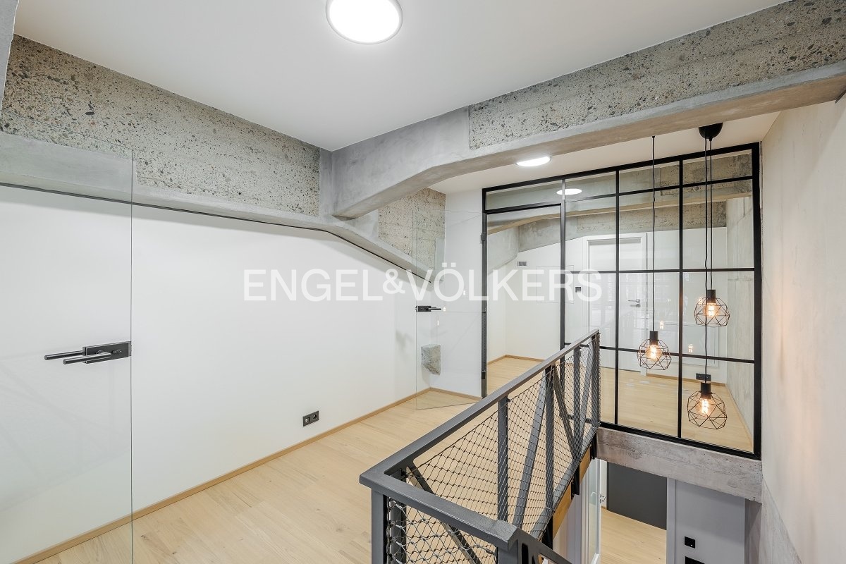 K okamžitému pronájmu je připraven moderní loftový byt 3+kk o rozloze 66 m2, který se nachází ve 3. nadzemním podlaží industriální rezidence Lofty Kolbenova.Dispozice bytu zahrnuje prostornou vstupní chodbu s vestavěnou šatní skříní, obývací pokoj s plně vybaveným kuchyňským koutem, dvěma pokoji v druhém podlaží bytu a samostatnou toaletou. Ze vstupní chodby je přístup do koupelny se sprchovým koutem a toaletou a do obývacího pokoje o rozloze 24 m2 vybaveného kuchyňskou linkou se všemi spotřebiči, s balkonem o rozloze 5 m2. Z obývacího pokoje vedou schody do druhého podlaží bytu s ložnicí o rozloze 11 m2 a výhledem do areálu, směrem na západ, kde je také skleněným panelem oddělená místnost o rozloze 7 m2, která poslouží jako šatna, pracovna či technická místnost. Z této místnosti je vstup do samostatné toalety, kde je také příprava na pračku.Podlahové krytiny tvoří dřevěné podlahy a dlažba, okna jsou hliníková a vybavena automatickými žaluziemi. Kuchyně je značky IKEA ve vysokém lesku. Byt je vybaven klimatizací, rekuperací a je vytápěn centrálně, podlahovým topením. V chodbě jsou vestavěné skříně. V domě je obyvatelům zpřístupněna kočárkárna a kolárna.Lokalita s ideální dopravní dostupností (metro B - Kolbenova, tramvaj před domem, 15 min do centra Prahy). V pěší vzdálenosti plná občanská vybavenost - OC Fenix, restaurace, cyklostezky, Klíčovský park (15 min), škola (7 min).Měsíční poplatky za služby činí přibližně 4 500 Kč včetně vytápění + elektřina. Jistota majiteli je ve výši dvou měsíčních nájmů a provize realitní kanceláři činí jeden měsíční nájem + DPH.
