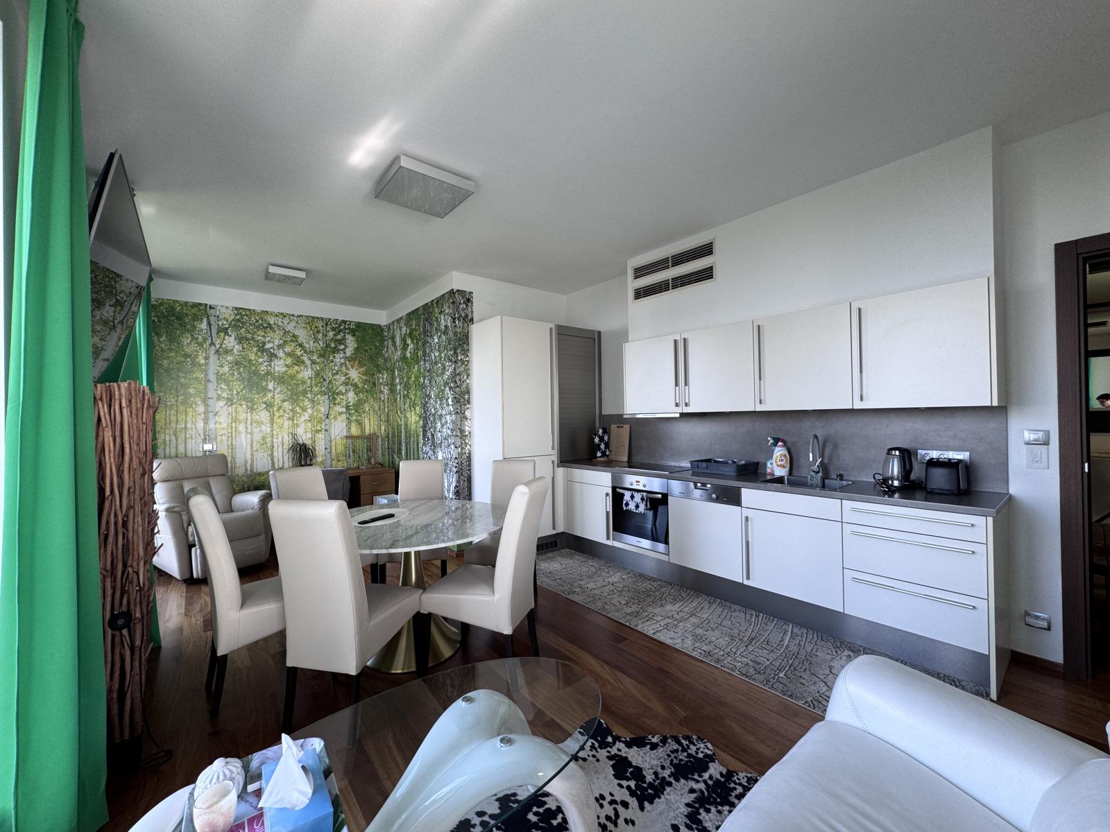 K dlouhodobému pronájmu luxusní byt 3+kk, rozloha 92 m2 s balkonem v prestižním rezidenčním komplexu and #34;Kavči Hory and #34;. Byt je plně vybaven kuchyní Miele, klimatizací, vestavěnými skříněmi, TV a nábytkem jako na fotografiích, masážním křeslem, pohovkou ovládanou dálkovým ovladačem, třemi televizory.