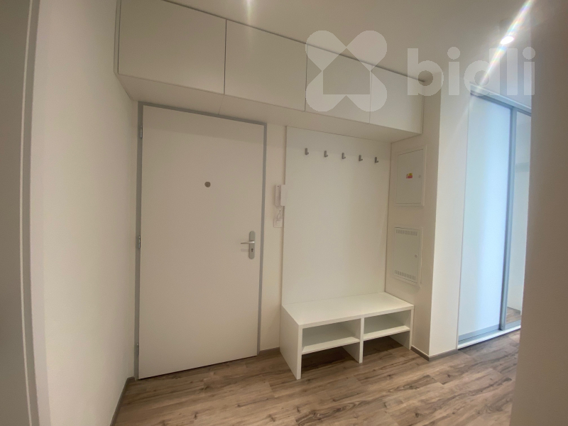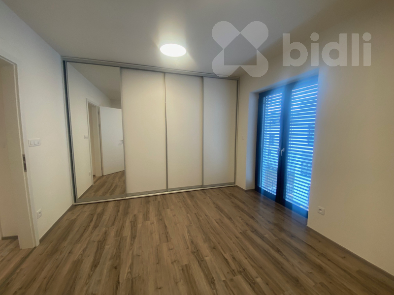 Součástí kuchyňské linky jsou vestavěné spotřebiče( lednice, myčka, indukční varná deska, trouba, MWT), v ložnici se nachází velká šatní skříň.
