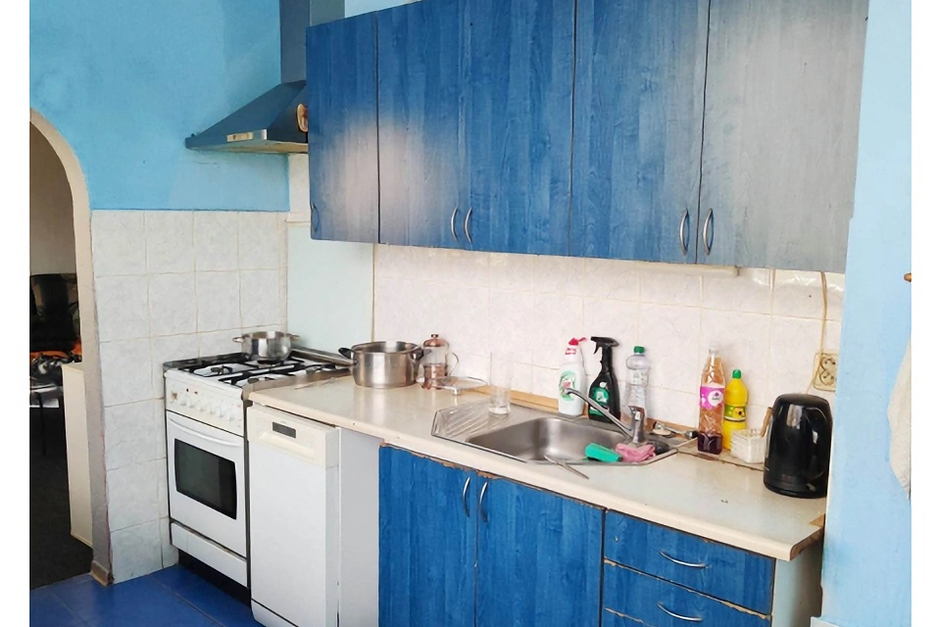 Skládá se z obývacího pokoje, ložnice, dvou pokojů, kuchyně s jídelním koutem, koupelny s vanou, samostatného WC a předsíně. Součástí bytu je také menší lodžie.
