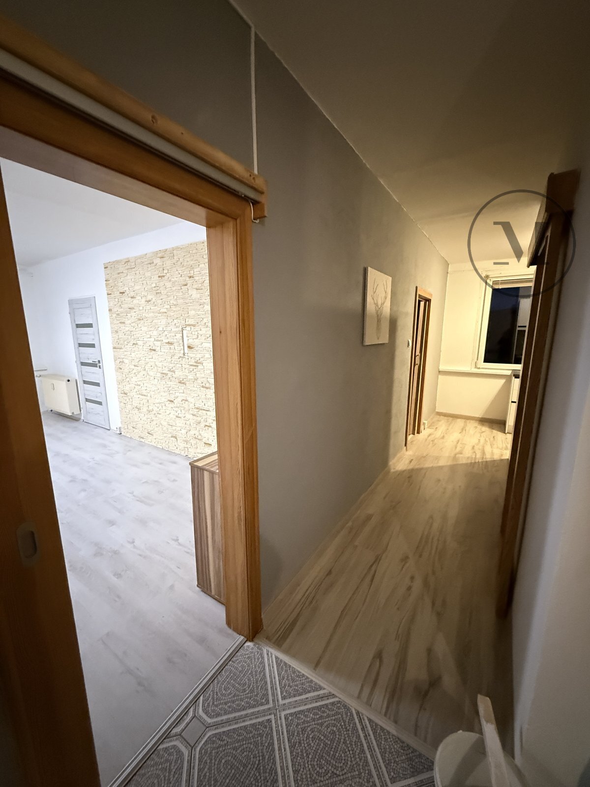 Byt nabízí tři samostatné pokoje, obývací pokoj a nově zrekonstruovanou kuchyni vybavenou moderní linkou, troubou, varnou deskou a dostatkem úložného prostoru.