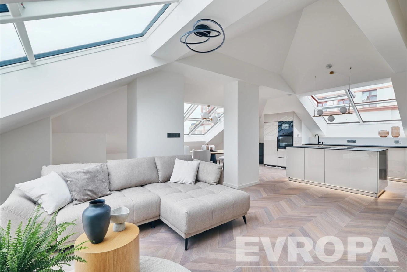 K pronájmu nabízíme luxusní slunečný apartmán v budově po kompletní rekonstrukci s rozlohou 119,7 m2 o dispozici 4+kk se třemi koupelnami. Nachází se ve čtvrtém poschodí cihlového domu s výtahem a vlastním parkovištěm.