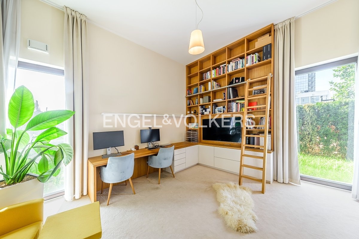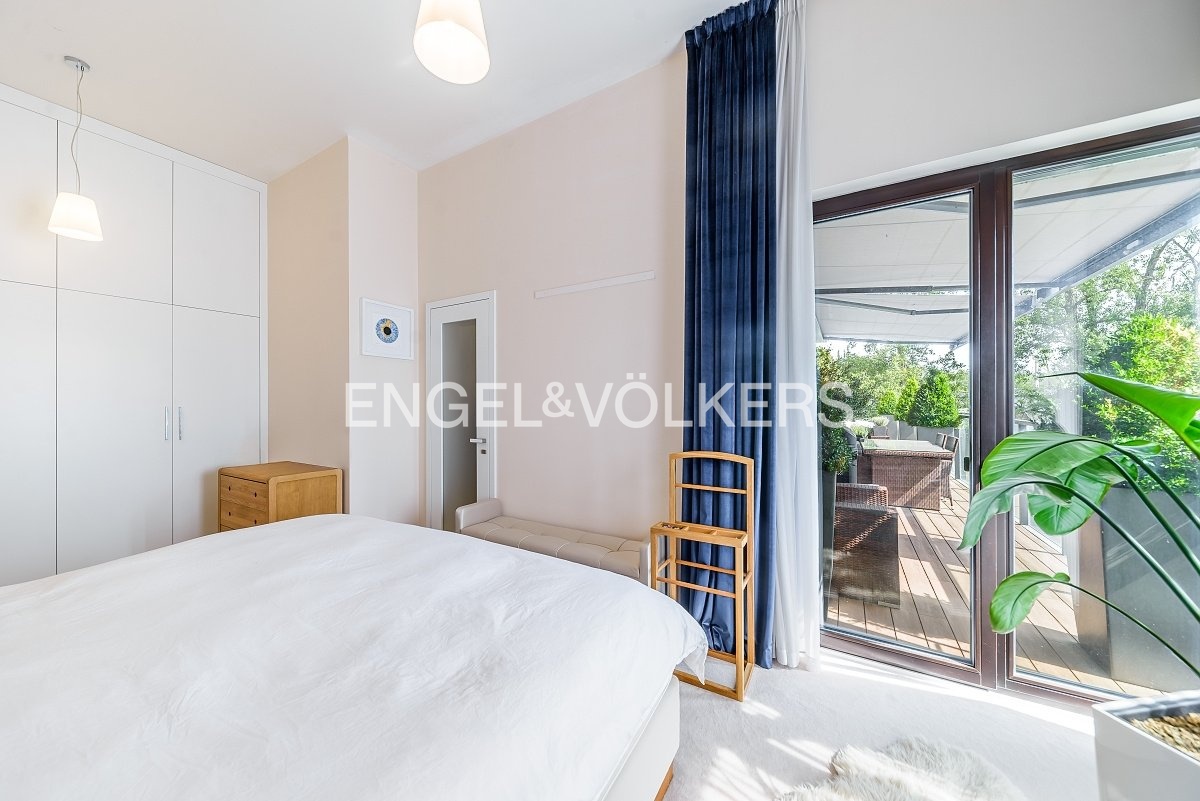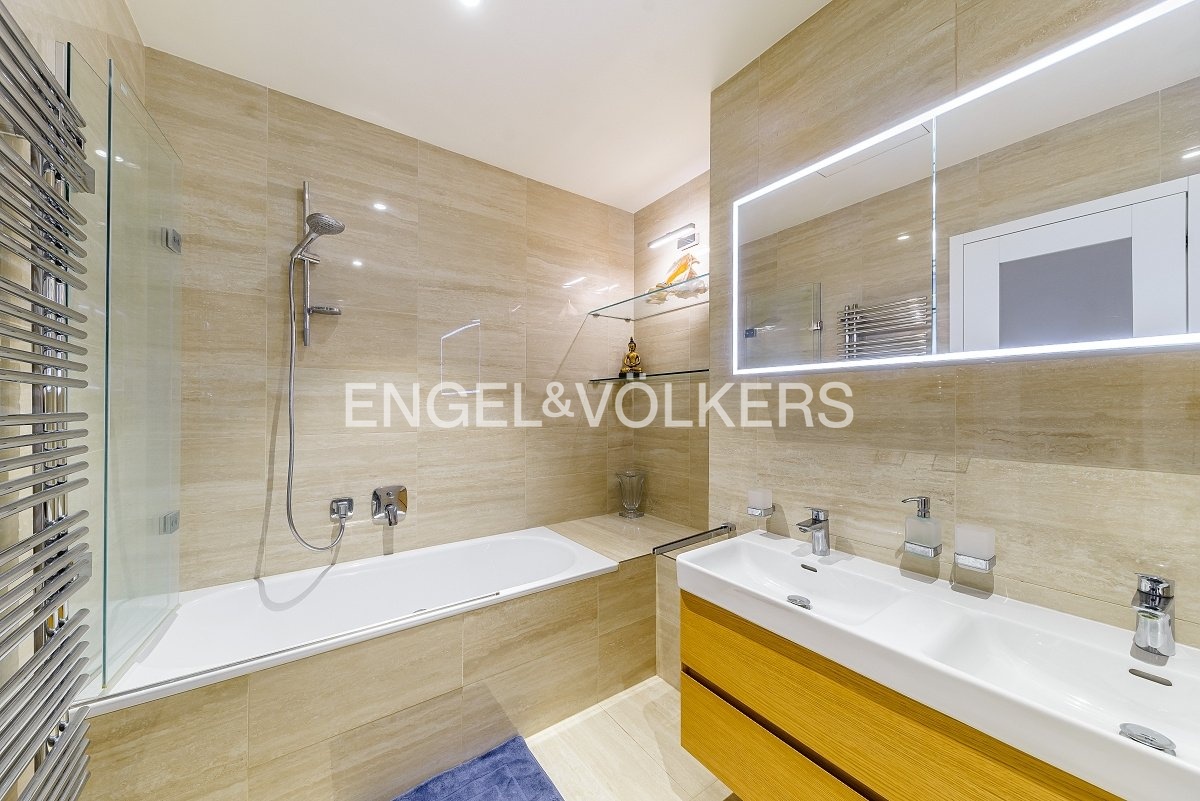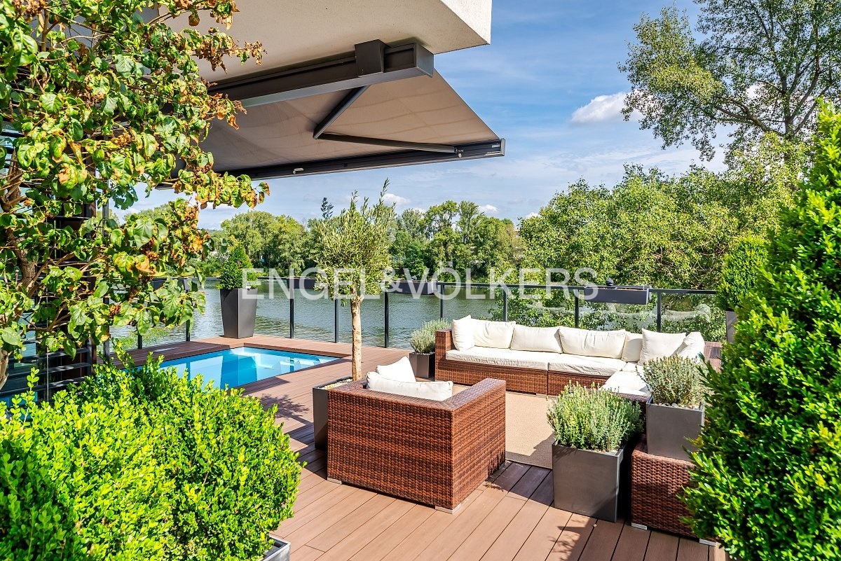 Nabízíme k pronájmu exkluzivní dvoupodlažní byt ve stylu townhouse v rezidenci Marina Island s výhledem na Vltavu. Byt s dispozicí 6+kk nabízí prostornou terasu (79 m2) s vyhřívaným bazénem se slanou vodou, venkovním sezením, grilem a maximálním soukromím. Nachází se v novém rezidenčním projektu s recepcí a fitness v srdci holešovického poloostrova.V prvním patře je světlá obývací místnost s krbem, kuchyní na míru se spotřebiči Miele a jídelnou propojenou s terasou. Hlavní ložnice má vlastní koupelnu a přístup na terasu. Další 3 ložnice (jedna jako pracovna) mají společnou koupelnu a přístup na předzahrádku. K dispozici je vstupní hala s úložnými prostory a toaleta.Ve spodním patře se nachází společenská a TV místnost s vinotékou, prádelna s pračkou a sušičkou Miele a vstup do soukromé garáže pro 2 vozy.Možnost krátkodobého pronájmu na 3 až 6 měsíců. Možnost pronájmu nábytku.Zájemce je srozuměn s provizí realitní kanceláři jednoho měsíčního nájmu + DPH.