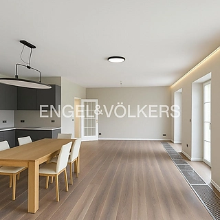 Kompletně zrekonstruovaný byt 3+kk o rozloze 106 m2 s panoramatickým výhledem na Vltavu a ikonické pražské památky, včetně Tančícího domu a...
