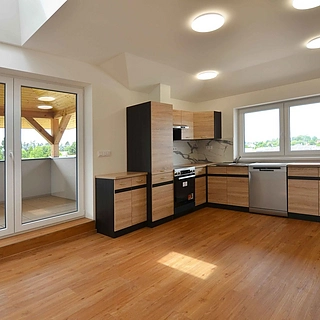 K pronájmu nabízíme zcela nový byt 3+1, který se nachází ve druhém patře domu se třemi bytovými jednotkami. Dominantou tohoto bytu je prostorný obývací...
