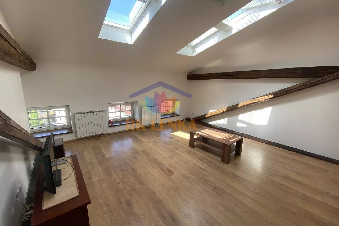 Atypicky řešený byt nabízí otevřený obývací pokoj s kuchyní, kde se nachází střešní okna, poté jsou zde 2 pokoje, veliká předsíň (možno lze využít jako pokoj), koupelna s vanou a sprchovým boxem, samostatné WC, za koupelnou se nachází technická místnost (prádelna), kde naleznete plynový kotel a pračku.