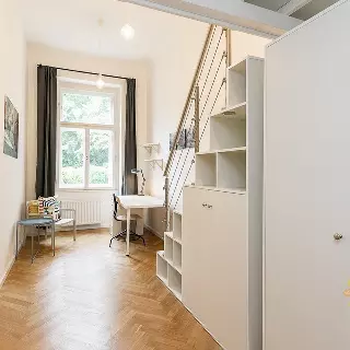 Nabízíme krásný, plně zařízený pokoj o velikosti 16 m² s manželskou postelí, který se nachází ve zvýšeném přízemí cihlového domu v rezidenci Kinských...