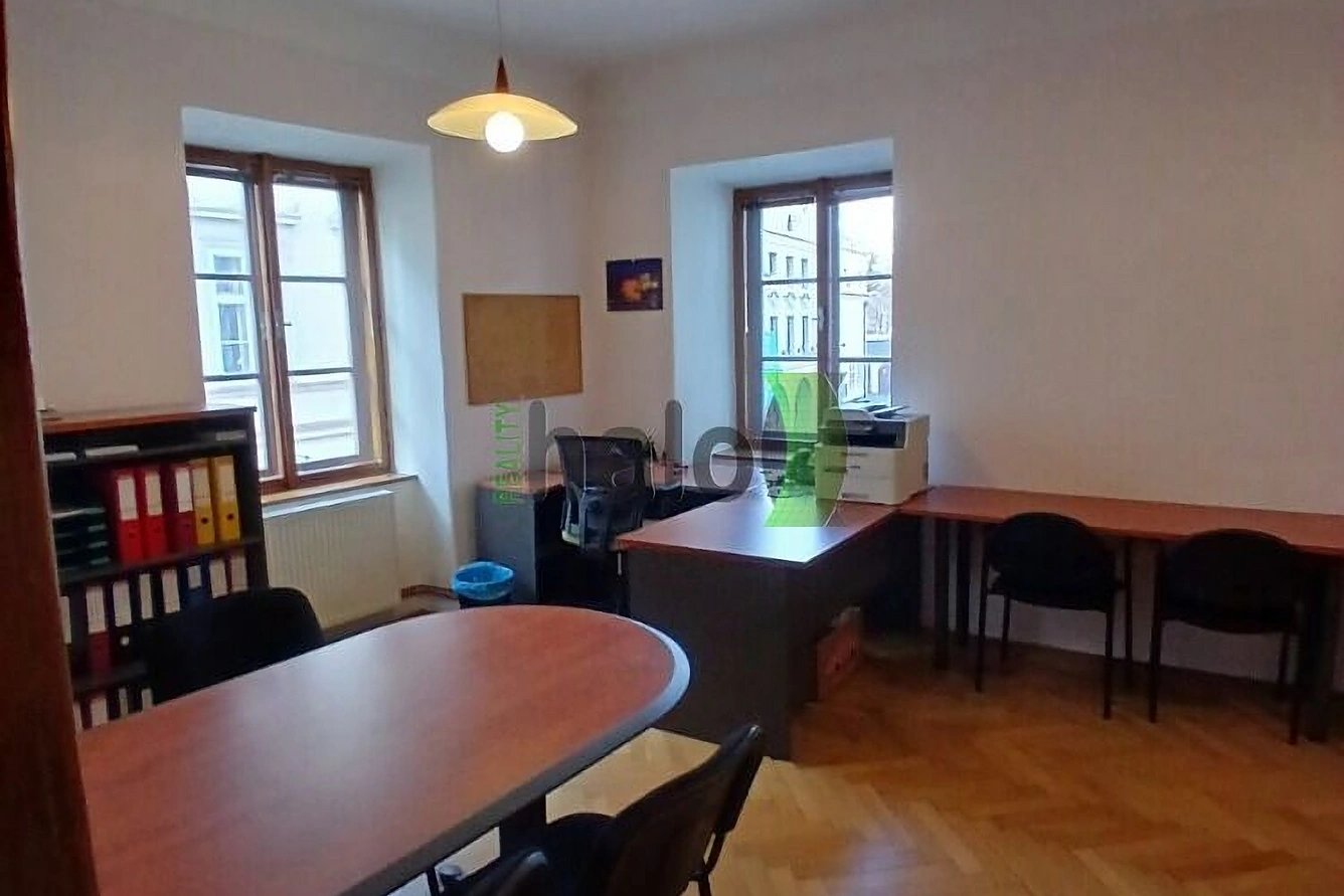 Pronajm kancelářských prostor o výměře 56 m2 v centru města Krajinská ulice. Dvě kanceláře 25 a 19 m2 kompletně zařízené kancelářským nábytkem a minikuchyňkou včetně chladničky a mikrovlnky. Součástí je koupelna se sprchovým koutem + WC a předsíň s plynovým kotlem. Okna směřující do ulice. Volné od 1.3.2026