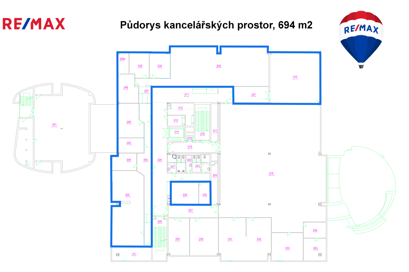 Velikosti jednotlivých kanceláří i jejich počet se po dohodě s pronajímatelem mohou přizpůsobit požadavkům nájemce. Pronajmout lze tedy jen část kanceláří a oddělit je od zbytku.