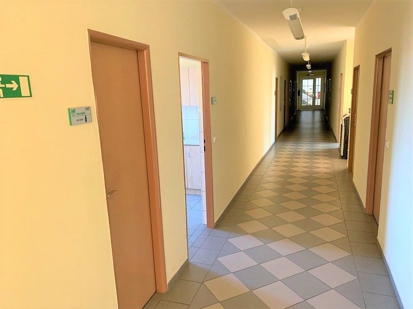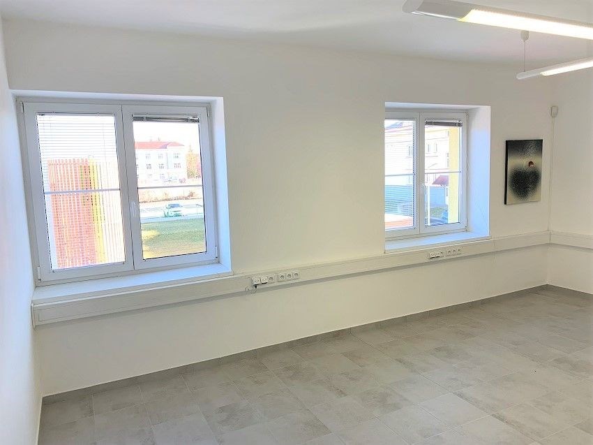 Samostatné kancelářské provozní prostory s příslušenstvím ke komerčnímu využití o výměře užitné podlahové plochy 16 m2, situované ve 2. NP (1. patro) zrekonstruovaného polyfunkčního objektuadministrativní budovy. Objekt je dostupný z veřejného prostranství ze zpevněné asfaltové komunikace s veřejnými parkovacími plochami na osobní automobily. Prostory byly zbudovány při celkové rekonstrukci objektu v roce 2003, nyní v kompletně provozním technickém stavu, částečně vybaveny s možností okamžitého předání a užívání. Průkaz ENB “C“. Prostory jsou přístupné společným vstupem se společným vestibulem, schodištěm a chodbou se samostatnými vnitřními vstupy. Součástí pronájmu je možnost užívání spol. soc. zařízení (WC pánské/dámské + umývárna) a užívání společné kuchyňky. Prostory jsou samostatně provozně odděleny a jsou využitelné jako komerční kancelářské prostory (kancelář, provozovna služeb, sídlo společnosti…). V případě zájmu budoucího nájemce lze nabídnout k pronájmu vyhrazené venkovní parkovací stání ihned u objektu s uzamykatelnou vjezdovou bránou. Administrativní budova je situována v nově se rozvíjející okrajové lokalitě okresního města (bydlení/služby/obchod) s navazující kompletní infrastrukturou, dostupností služeb a kvalitní dopravní dostupností. Vytápění: elektrické podlahové (centrální). Vybavení: podlahové krytinykeramické dlažby / koberce, okenní žaluzie, osvětlení, zařizovací předměty, telefonní linky + internetová sít, el. zabezpečení spol. prostor. Výše nájemného: 1.850, Kč/měsíčně + DPH (provozní energie a služby 1.585, Kč/měs. + DPH).
