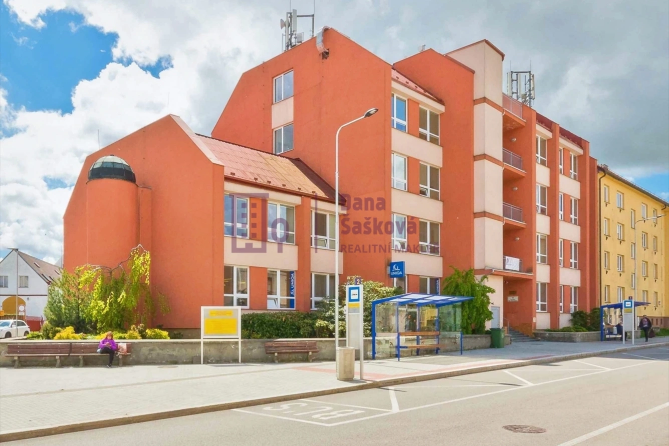 Pronájem kanceláře ve 2. nadzemním podlaží kancelářské budovy s výtahem v Pravdově ulici, Jindřichův Hradec.