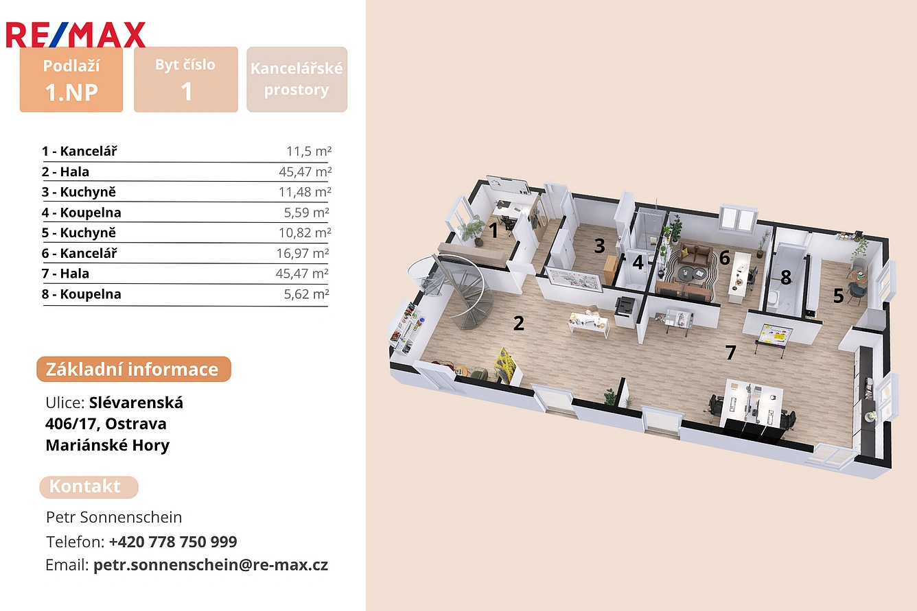 Nabízíme k pronájmu prostorné a reprezentativní kancelářské prostory o celkové výměře 188 m², umístěné v administrativní budově na ulici Slévárenská, v městské části Ostrava – Mariánské Hory.