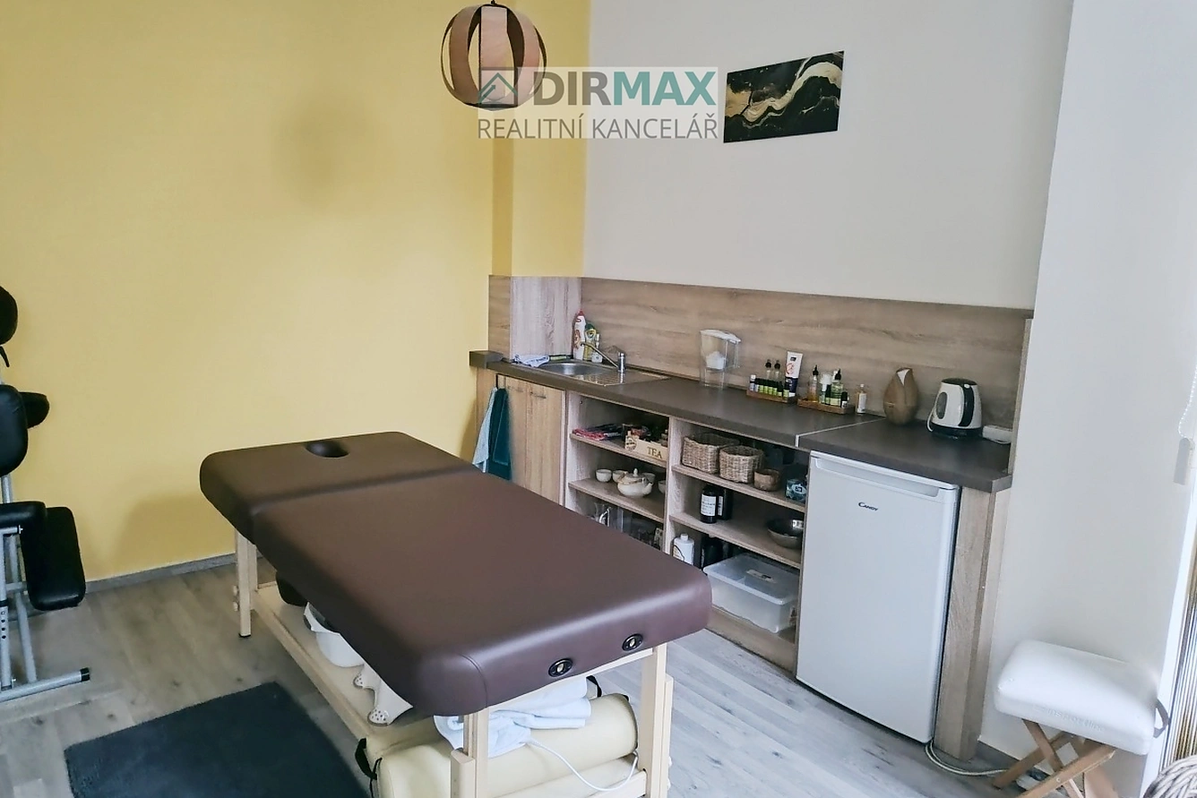 Z vybavení je tady kuchyňská linka, dřez, lednička, profi masážní lůžko s otvorem na obličej a je polohovatelné, několik skříněk, skříní, stolek, zástěna plus další drobnější vybavení vč. sezení. Využití je skutečně rozmanité. Ideální pro maséra, masérku, fyzioterapeuta nebo terapeutku, ideální zejména na masáže a poradenství, k tomu je prostor kolaudovaný! Je zde zavedená klientela.