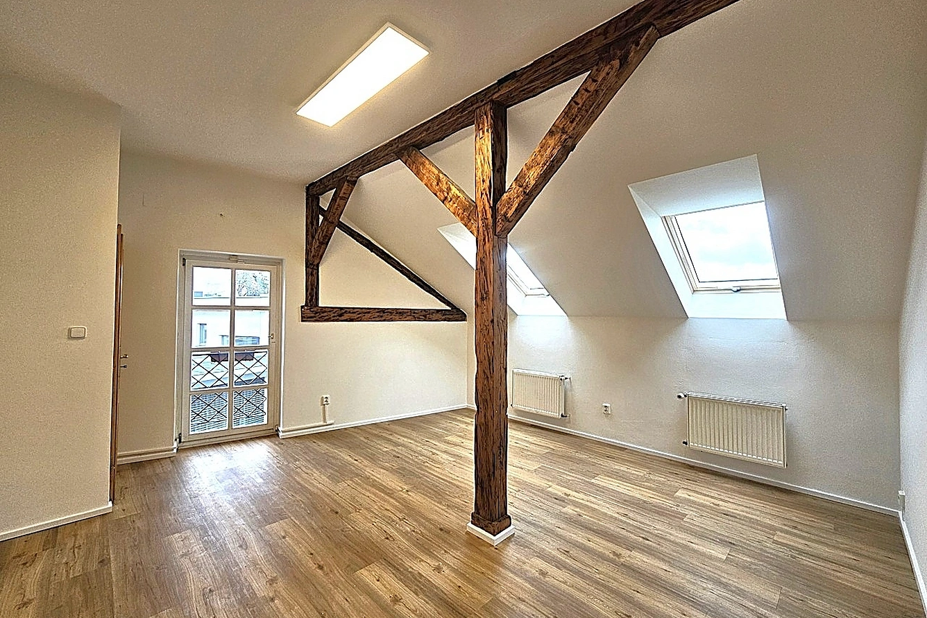 Prostor je po nákladné, právě dokončené rekonstrukci, při které byly vyměněny všechna střešní okna, položen kvalitní vinyl, nainstalována nová kuchyňská linka a proběhla kompletní výmalba. Prostor sestává ze vstupního schodiště (8,21 m2), 4 průchozích místností (22,51 m2, 16,77 m2, 9,07 m2, 13,23 m2), koupelny s WC (7,92 m2) a 1 neprůchozí místnosti, ve které je i klimatizační jednotka (26,28 m2). Prostor je nezařízený nábytkem. K dispozici je nová kuchyňská linka s novými spotřebiči – indukční vařič, lednice a mikrovlnná trouba. V prostorné koupelně je umývadlo, WC, vana i sprchový kout. Na podlaze je nový vinyl a dlažba. Topení je ústřední - kotel na LTO pro celý dům, který je možné ovládat vlastním termostatem. Prostor je možné mít zabezpečený alarmem od společnosti Jablotron, který je napojený na CPO a to za 400 Kč měsíčně.