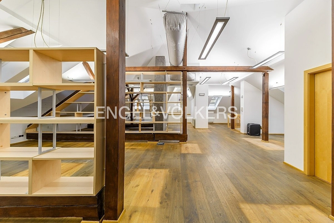 K pronájmu nabízíme atraktivní kanceláře v podkroví historického domu v Nuslích s open-space plánem a dvěma samostatnými místnostmi. Dom se nachází ve frekventované lokalitě Nuslí v blízkosti zastávek "Otakarova", "Divadlo na Fidlovačce" a "Náměstí Bratří Synků". Prostory se nachází v podkroví - čtvrtém nadzemním podlaží budovy. Vstup je přes dveře domu a schodiště. Hlavní prostor je otevřený, vhodný jako open office a má dvě samostatné místnosti, které je možné využít jako kanceláře nebo zasedací místnosti. Atypické řešení interiéru je vhodné pro mladé a kreativní kolektivy zaměstnanců.Prostoru dominují dřevěné elementy - parkety, krov střechy do kterého jsou umístěny policové stěny. Prostory mají dostatek světla díky střešním oknům a kancelářskému osvětlení. Z prostor je přístup na terasu, v současnosti přes okno s možností dobudování schodiště. Zavolejte a domluvte si prohlídku.