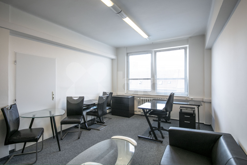 Kancelář je k pronájmu připravena čistá, vymalovaná, s novým kobercovým povrchem, vybavená nábytkem.