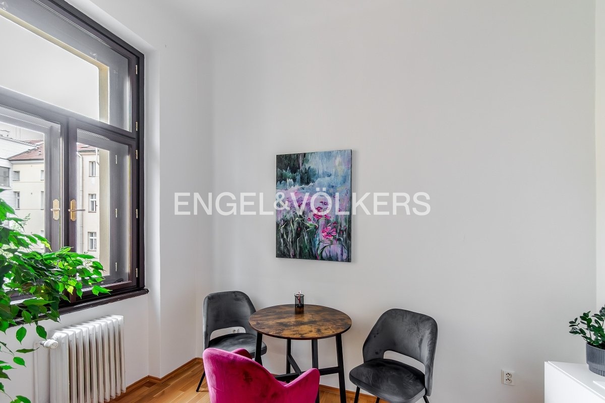 K podnájmu nabízíme reprezentativní kancelář s menší místností vhodnou například jako zasedací místnost, v atraktivní lokalitě pražského Smíchova, v ulici Štefánikova.Prostor je ideální pro jednoho až dva uživatele – například advokáta, notáře, daňového či finančního poradce, účetního nebo jinou klidnou kancelářskou činnost.Součástí nabídky je možnost využití sdílené klimatizované zasedací místnosti o velikosti 20 m2, vhodné až pro 10 osob.Kancelář je situována v klidném vnitrobloku činžovního domu, což zajišťuje nerušené a příjemné pracovní prostředí. K dispozici je také sdílené zázemí – kuchyňka, toalety a další nezbytnosti pro každodenní provoz.Výborná dostupnost MHD, prestižní adresa a klidná atmosféra činí z tohoto prostoru ideální místo pro vaši kancelář.Pro více informací kontaktujte realitní makléřku.