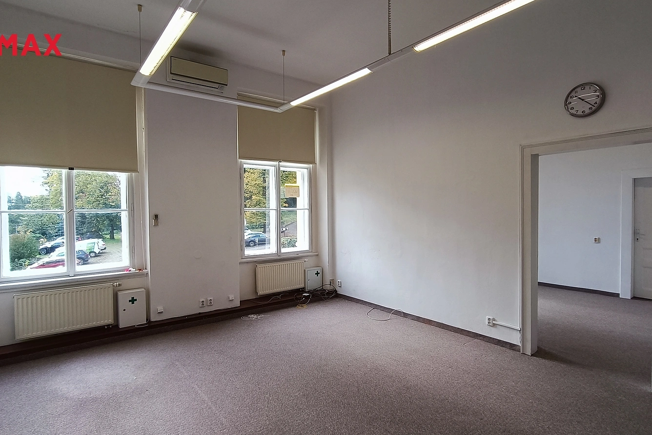 Pěkná kancelář o třech průchozích místnostech 58 m2 (26 m2 + 19 m2 + 13 m2, v 1 NP objektu v areálu Sacre Coeur.