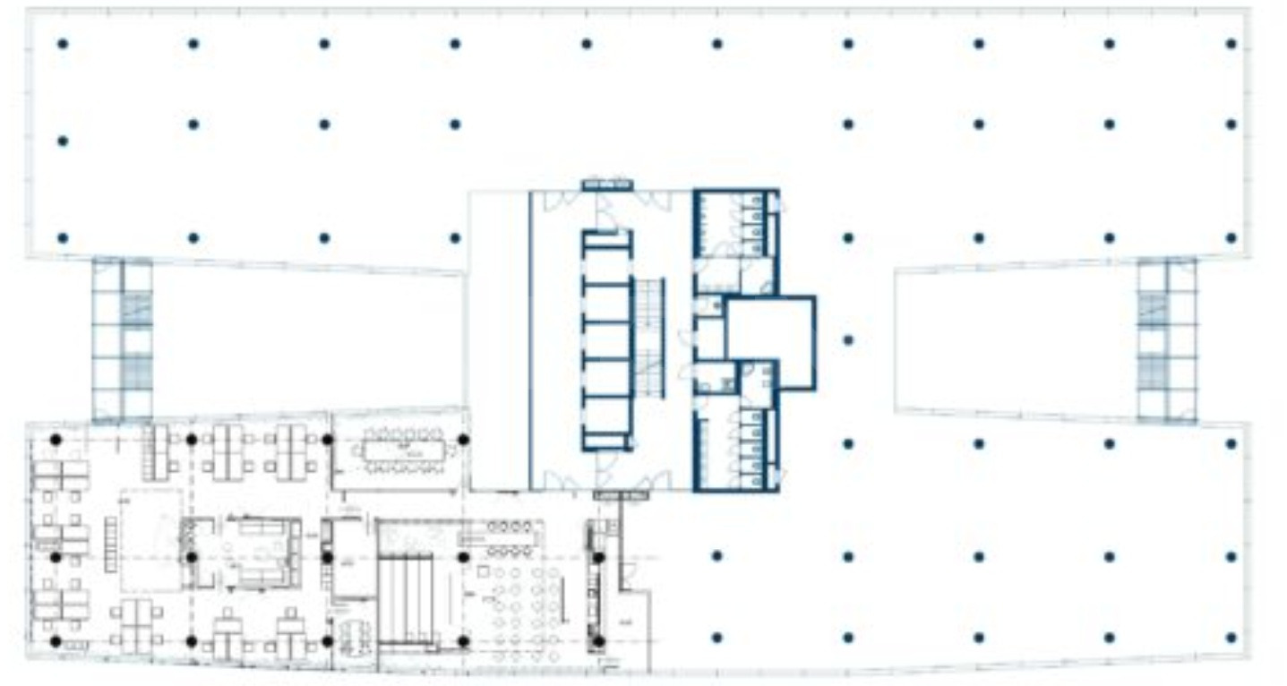 K dispozici jsou nájemcům střešní terasy s bohatou zelení a relaxačními zónami, kantýna a restaurace.