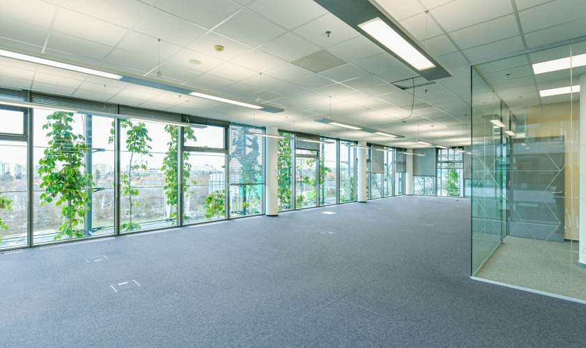 Kancelářská jednotka se skládá ze dvou celku (591 m² a 951 m²), které lze pronajmou i samostatně.