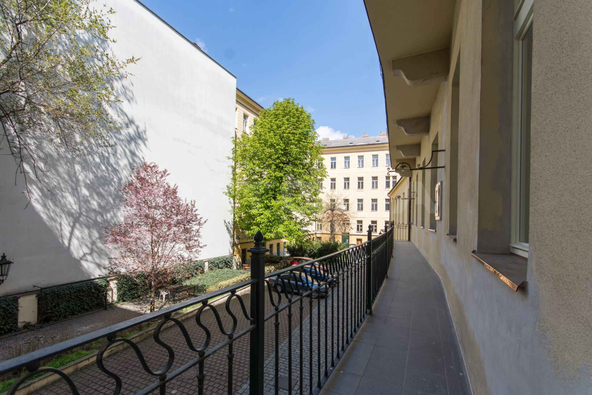 Kromě prvotřídní lokality s výbornou dopravní dostupností a veškerou občanskou vybaveností je výhodou budovy možnost parkování a také hezký a klidný vnitroblok, kde si, i přestože se nacházíte v centru města, můžete užít příjemné posezení.