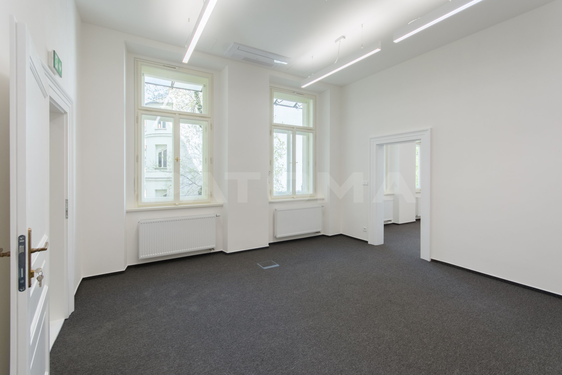 Tato krásná, historická budova s výtahem prošla velice citlivou a nákladnou rekonstrukcí, díky čemuž si můžete dopřát moderní pracovní prostředí a zároveň si užít honosnou atmosféru, kterou Vám navodí hojně se vyskytující historické detaily a architektonické prvky.