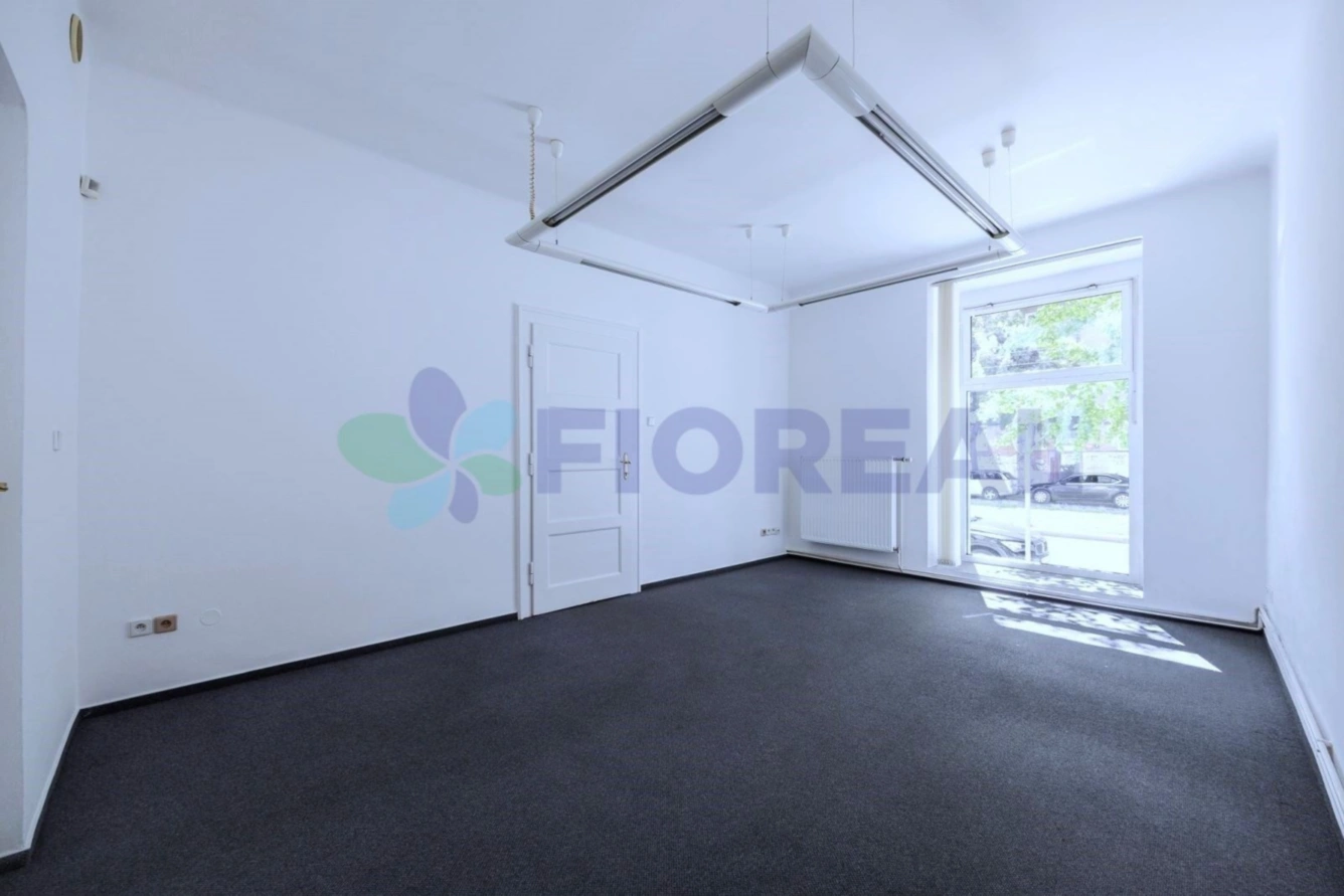 Zprostředkujeme pronájem kanceláře o velikosti 79 m2 nacházející se ve zvýšeném přízemí kancelářského činžovního domu. Prostor nabízí 3 kancelářské místnosti, vybavenou kuchyňku a samostatnou toaletu. Dvě místnosti jsou situované na jih (Vršovická ulice) a třetí na sever do vnitrobloku, viz. dispoziční plánek ve fotogalerii. Vstup do prostor je z domu (dokonce dva vstupy), nikoli z ulice. Nejen z tohoto důvodu není vhodné prostor použít k určitým účelům, váš záměr prvně konzultujte s makléřem. Na podlaze je položen koberec, okna do ulice mají fólii, díky které není dovnitř vidět, ale ven ano, fólie se dá jednoduše odstranit.