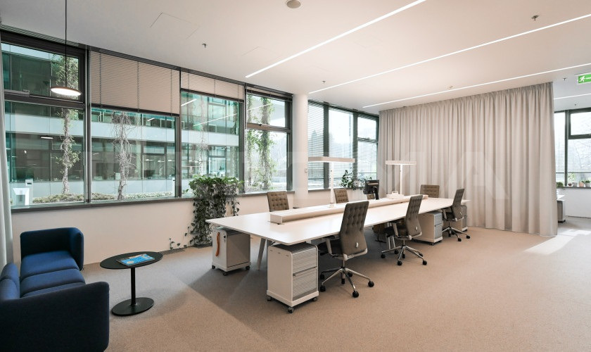 Kancelářská jednotka se skládá ze dvou celku (591 m² a 951 m²), které lze pronajmou i samostatně.