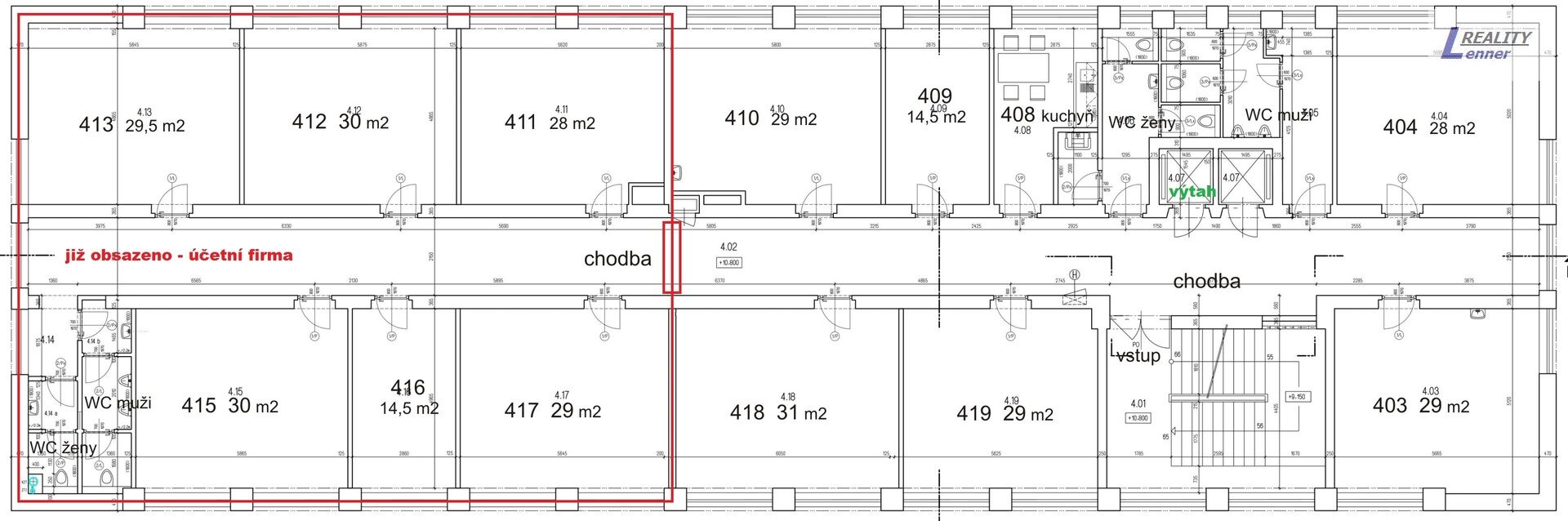 4. a 5. patro: před rekonstrukcí, úpravy možné dle přání nájemce (dlouhodobý nájem)