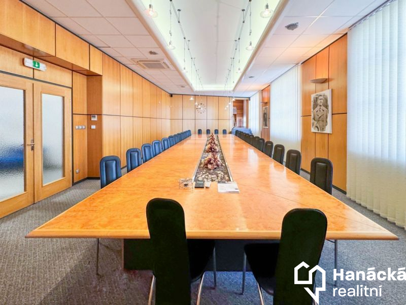 Pro nájemce je k dispozici kompletně zařízená konferenční místnost v 1. NP (vhodné na meetingy, školení apod. – viz. foto)
