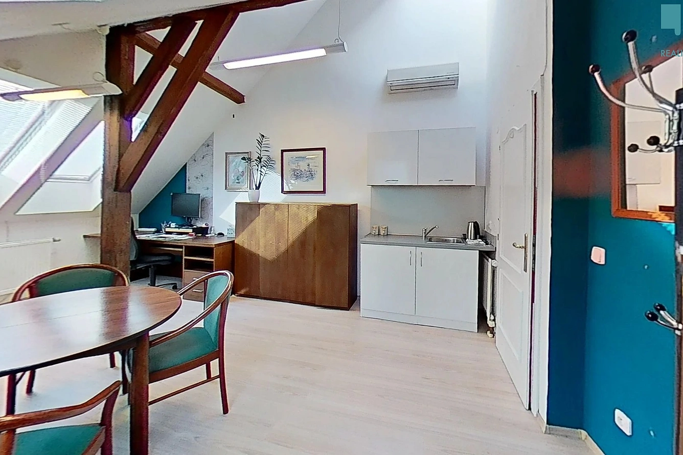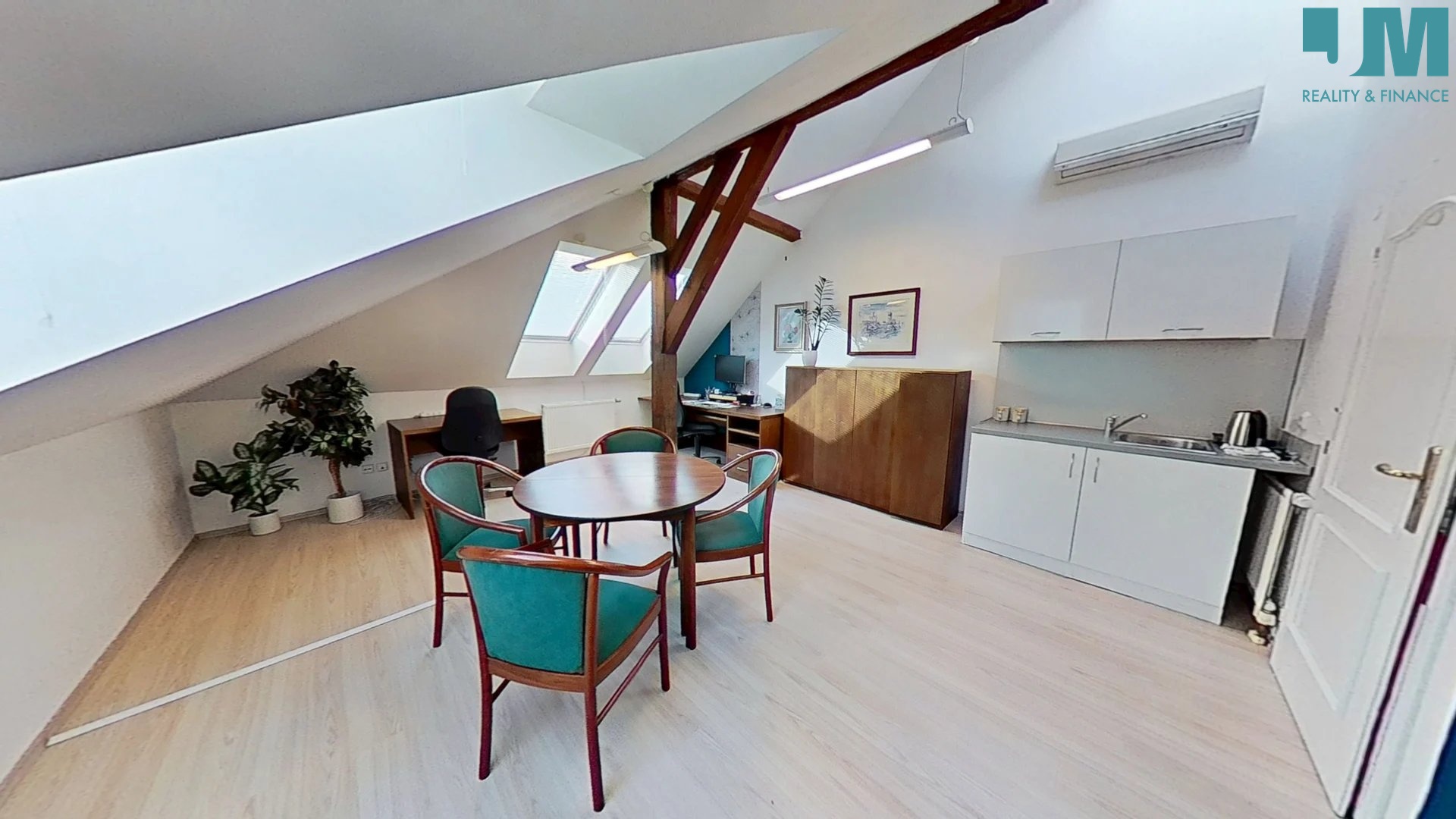Nabízíme k dlouhodobému pronájmu světlou, útulnou a velmi příjemně zařízenou podkrovní kancelář o výměře 25 m2, která se nachází ve 2. patře udržované budovy na ulici Hornoměstská ve Velkém Meziříčí. Prostor je ve výborném stavu a připravený k okamžitému využití – ideální pro administrativu, služby, online podnikání nebo jako klidné pracovní zázemí.Kancelář je kompletně vybavená: kuchyňský kout s dřezem a lednicí, 2 pracovní stoly, 2 pojízdné kancelářské židle, kulatý jednací stůl + 4 čalouněné židle, 4 úložné skříňky a věšák na kabáty.Toalety se nacházejí hned vedle kanceláře na stejném patře.Občanská vybavenost:Lokalita nabízí výbornou dopravní dostupnost i kompletní občanskou infrastrukturu: V blízkosti restaurace a kavárny vhodné pro schůzky i obědy, supermarket, pošta, bankomaty a další služby v pohodlné docházkové vzdálenosti, snadná dostupnost MHD a rychlé napojení na D1.Prostor je volný od 1. 12. nebo po domluvě.Nájemné: 6 500 Kč / měsícZálohy na energie: 2 000 Kč / měsícVratná kauce: 8 500 KčProvize RK: 15 000 KčSamozřejmostí naší realitní kanceláře je fotogalerie, virtuální (3D) prohlídka bytu, pomocí které si můžete nemovitost prohlédnout nejdříve pohodlně z vašeho domova.Těším se na prohlídku s vámi!
