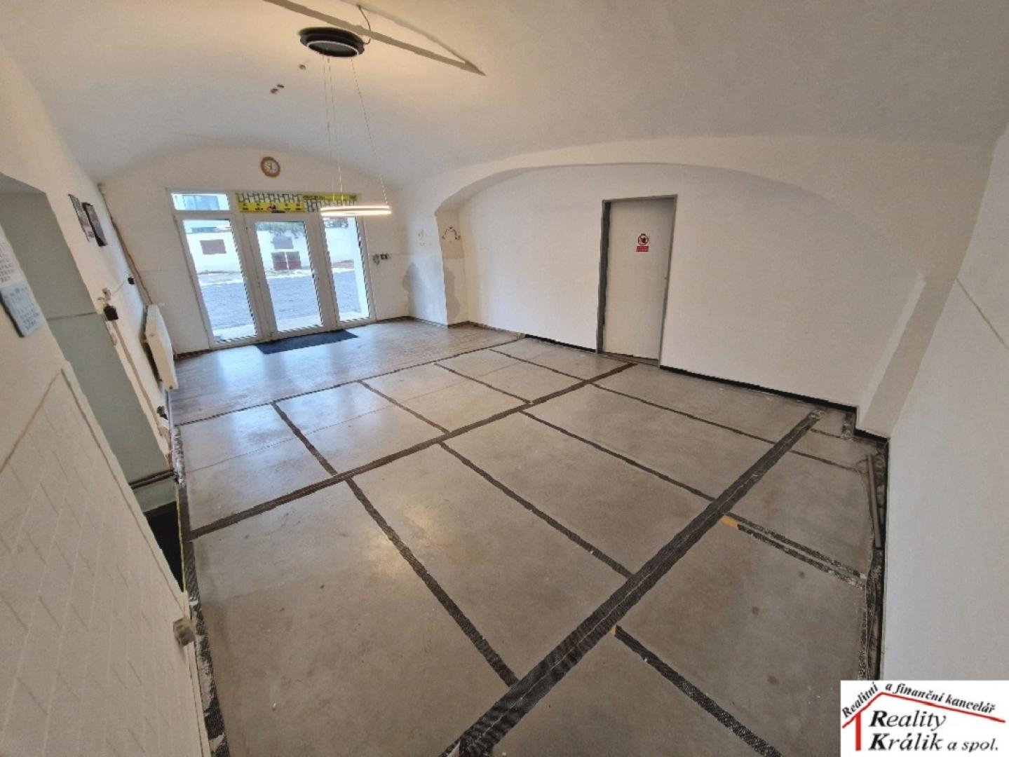 Dispozice: prodejna (33m2), 1. kancelář (19m2), 2. kancelář (11m2), 3. kancelář (8m2), sklad (17m2), chodby a 2x WC (1xsprchový kout).