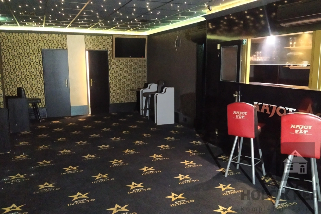 Uvedené prostory jsou tvořené hlavní místnosti + 2 menší příruční sklady a sociálním zařízením. V hlavní místosti je instalovaný bar s rozvody vody a odpady. Na podlaze je položený koberec, ve skladech, sociáním zařízení a schodišti keramická dlažba. Kompletní plocha nabízeného prostoru je 61 m2. Prostory jsou zabezpečené alarmem, jsou k dispozici ihned.