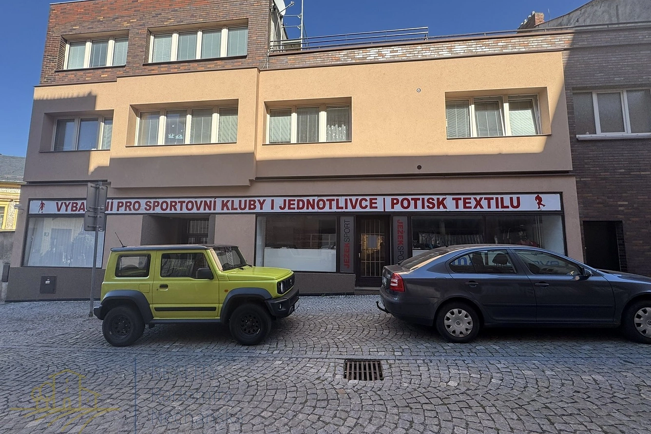 Dominantou je velký prostor s výlohou o velikosti 39,07 m² se samostatným vstupem z ulice a propojením přes společný vchod s menším prostorem s výlohou o velikosti 17,13 m². K většímu prostoru náleží zázemí o 37,45 m² s výhledem do klidné, pečlivě udržované zahrady, přičemž okna jsou vybavena bezpečnostními mřížemi. Další místnosti lze využít jako sklady, šatny, kanceláře či sociální zázemí. Celý objekt je podsklepen, část sklepních prostor může sloužit jako sklad nebo archiv.