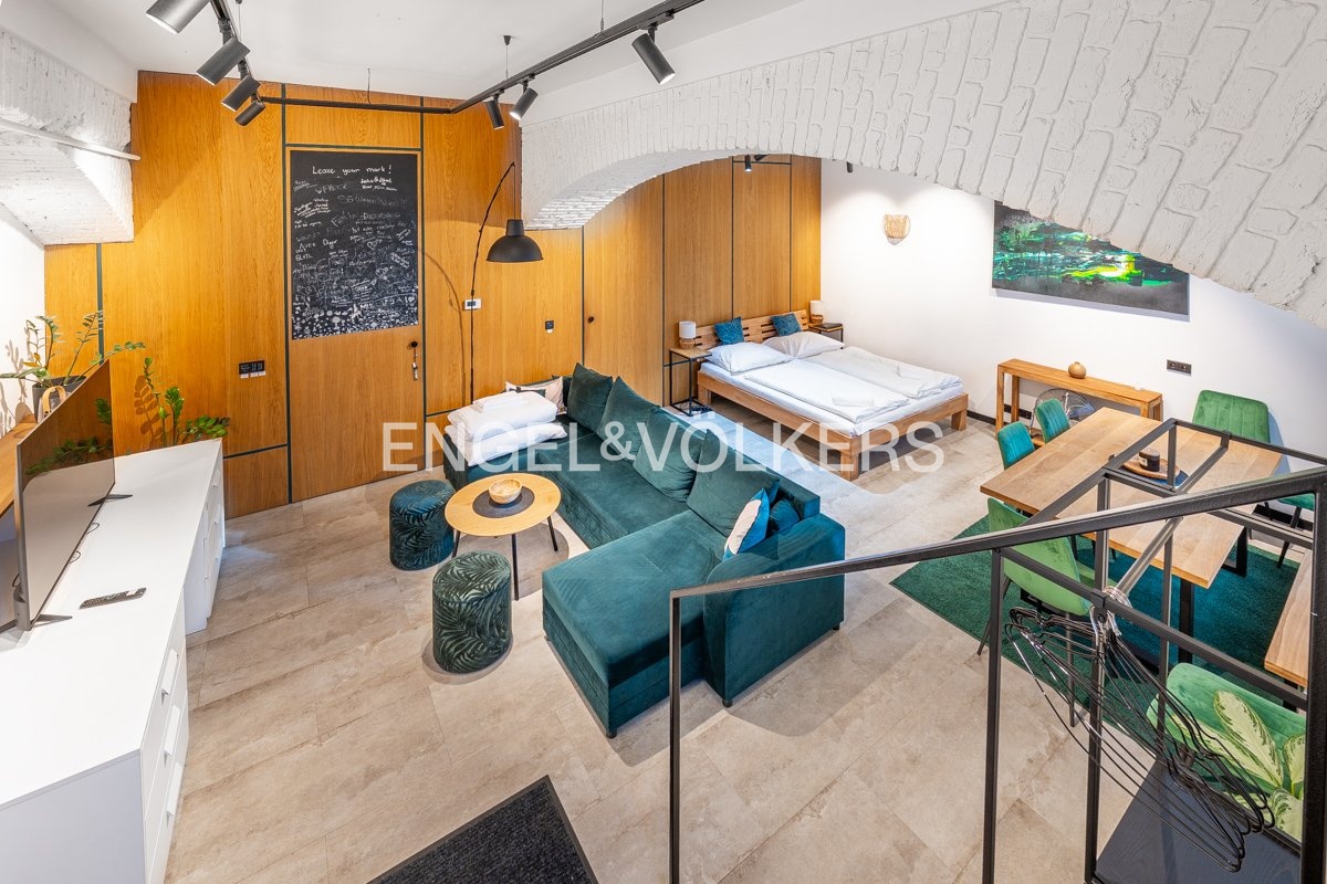 Nabízíme k pronájmu kompletně zrekonstruovaný prostor, situovaný v přízemí elegantního činžovního domu na prestižní adrese Rašínova nábřeží s výhledem na Vltavu jen pár kroků od oblíbené pražské náplavky. Prostor je aktuálně využíván jako krátkodobé ubytovací zařízení, v minulosti však sloužil jako obchodní jednotka s původní kolaudací na „krám“. Díky tomu je možné jeho všestranné využití – ideálně jako reprezentativní kancelář, ateliér, showroom nebo designový obchod. Jedná se o snížené 1. NP se samostatným vstupem přímo z ulice s dvěma velkými okny využitelnými jako výlohy, která zajišťují dostatek denního světla a výbornou viditelnost z nábřeží.Po vstupu z ulice se nachází hlavní otevřený prostor o výměře 39,74 sqm, na který navazuje zázemí s kuchyňkou, koupelna se sprchovým koutem a oddělenou toaletou. Součástí je také samostatná místnost, která může sloužit jako sklad. Prostor je plně vybaven nábytkem i spotřebiči a je tak připraven k okamžitému užívání bez nutnosti vyšších investic.Poloha zaručuje výbornou dopravní dostupnost – v docházkové vzdálenosti je metro B Karlovo náměstí (vstup z Palackého náměstí) i zastávky tramvají a autobusů. Energetická náročnost budovy je ve třídě G, vytápění je plynové.Pro více informací neváhejte kontaktovat makléře.