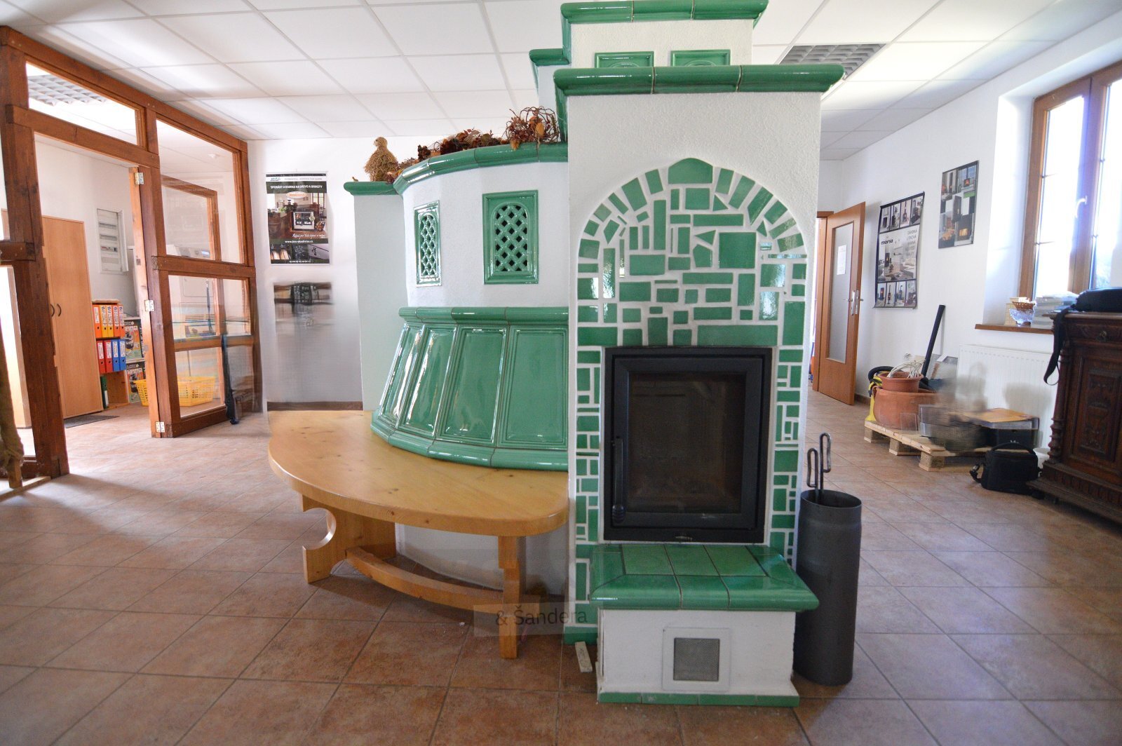 Topení je zajištěno centrálně, k dispozici je ale také krb. Výhodou je i terasa, kterou lze využít například pro odpočinek či prezentaci.
