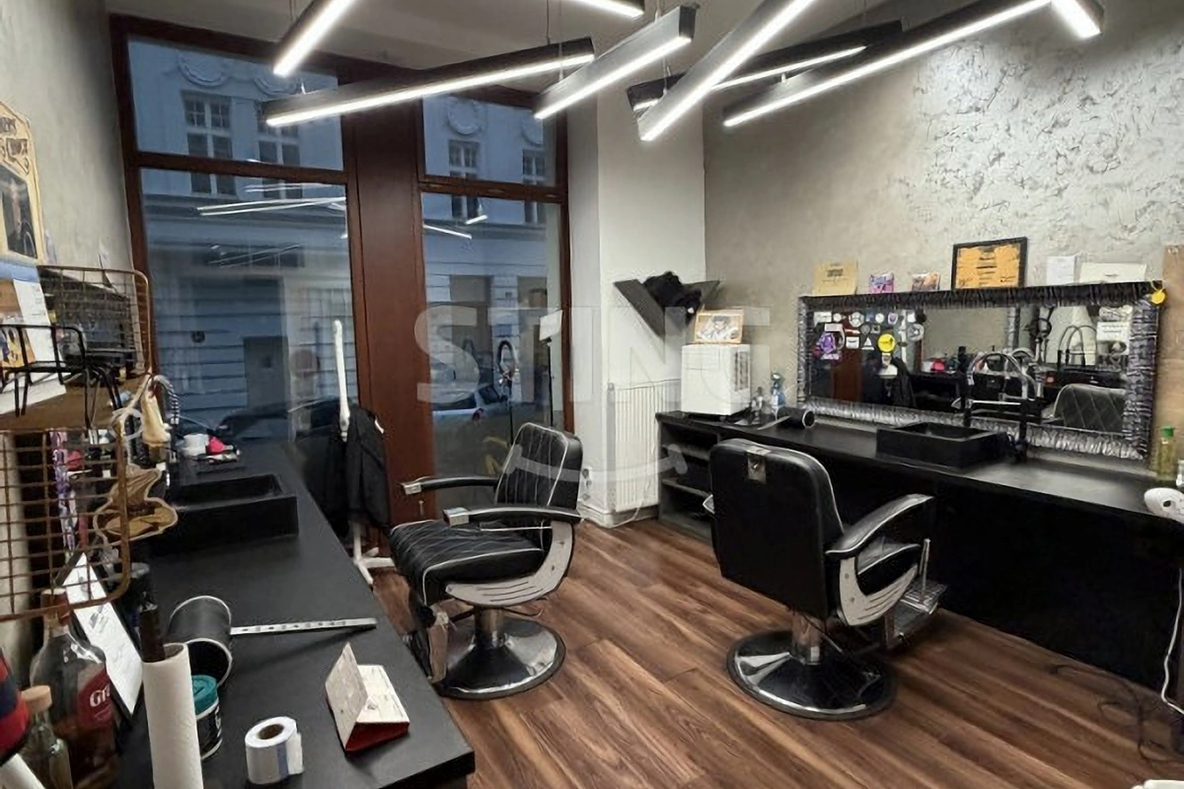 Prostor o velikosti 42,95 m² je vhodný pro podnikání v oblasti služeb, kosmetiky, kadeřnictví, barber studia, menší kanceláře, showroomu nebo ateliéru.