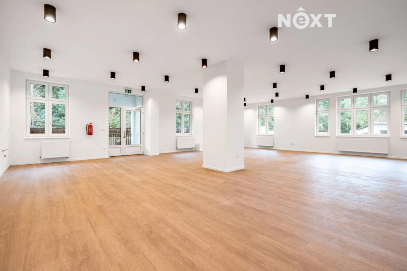 K pronájmu nabízíme prostorný víceúčelový sál o výměře přibližně 120 m², který zaujme vysokými stropy, velkými okny a příjemnou světlostí. Prostor je navržen tak, aby se snadno přizpůsobil vašim potřebám – konference, školení, společenské akce, nebo coworkingový prostor.