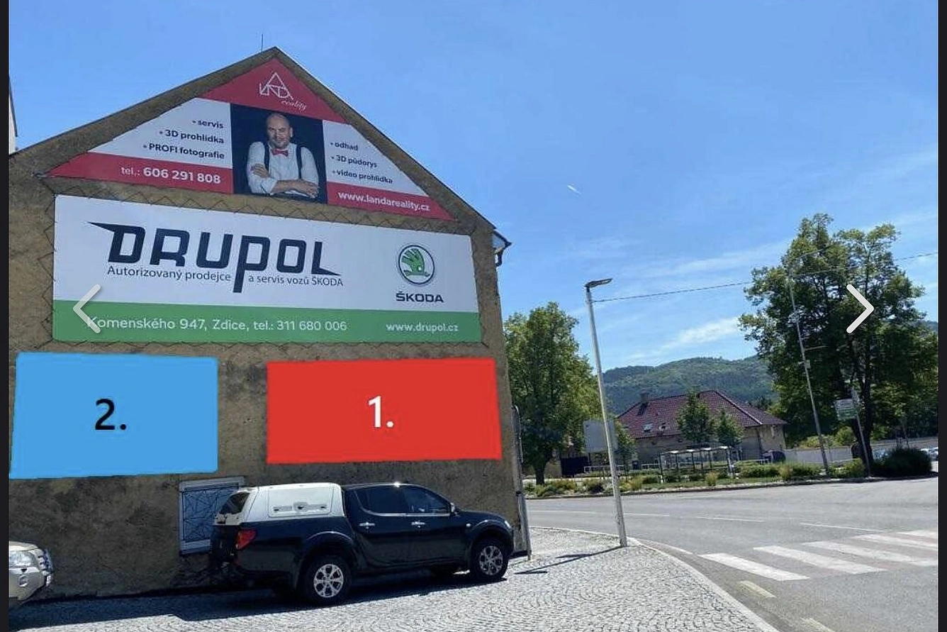 K pronájmu - Reklamní plochy ve Zdicích u Berouna.Nabízím k pronájmu jedinečné reklamní plochy, kterým nelze uniknout. Reklamní plochy na budově nabízím v lokalitě s nejvyšší dopravní zátěži a v úsecích časté kumulace vozidel.Vaše nová reklama bude na očích 24/7. Díky skvělému umístění osloví nejen motoristy, ale i pěší. Právě kvůli cenové dostupnosti jsou plochy vhodné pro všechny typy reklam.Dostupná je plocha o rozloze 15 m2 za 1.666 Kč / měsíc (20.000,.kč/rok). Posuňte svou firmu nebo podnikání o level výš a zařídíte ji skvělou příležitost pro její růst. Neváhejte mě kontaktovat v případě zájmu.