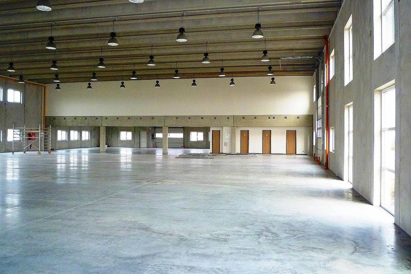 Jedná se o prostory v novostavbě víceúčelové budovy o celkové velikosti přízemí 1802 m2, určeno pro využití jako sklad, popřípadě výroba. Rolovací vrata, halog. osvětlení, vytápění plynové výměníky ( foto ), WC, kuchyňka, šatny. Nosnost podlah v objektu skladu min. 10t/m2.