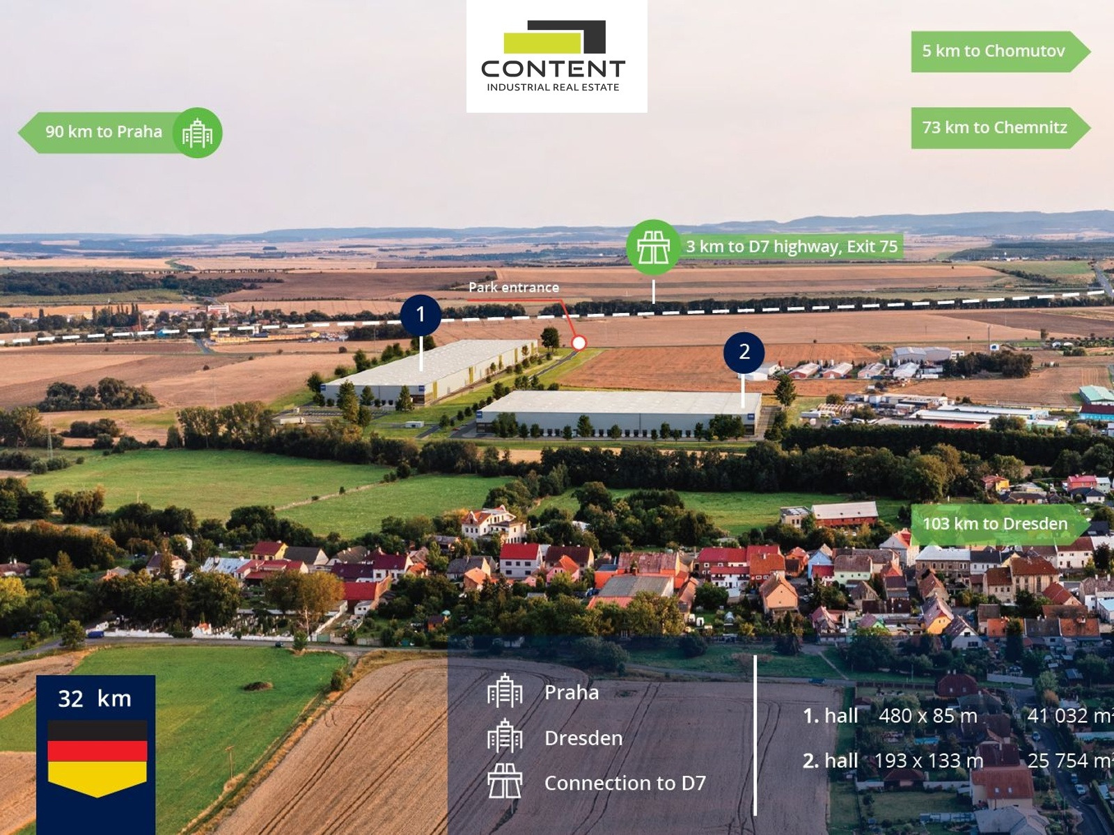 V zastoupení majitele a bez provize nabízíme atraktivní novostavbu skladu nebo výrobních prostor v nově vznikajícím logistickém parku u dálnice D7, exit 75.