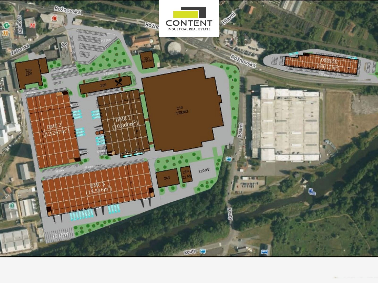 - k dispozici dvě budovy 12.300 m² a 15.800 m², k nastěhování dle dohody