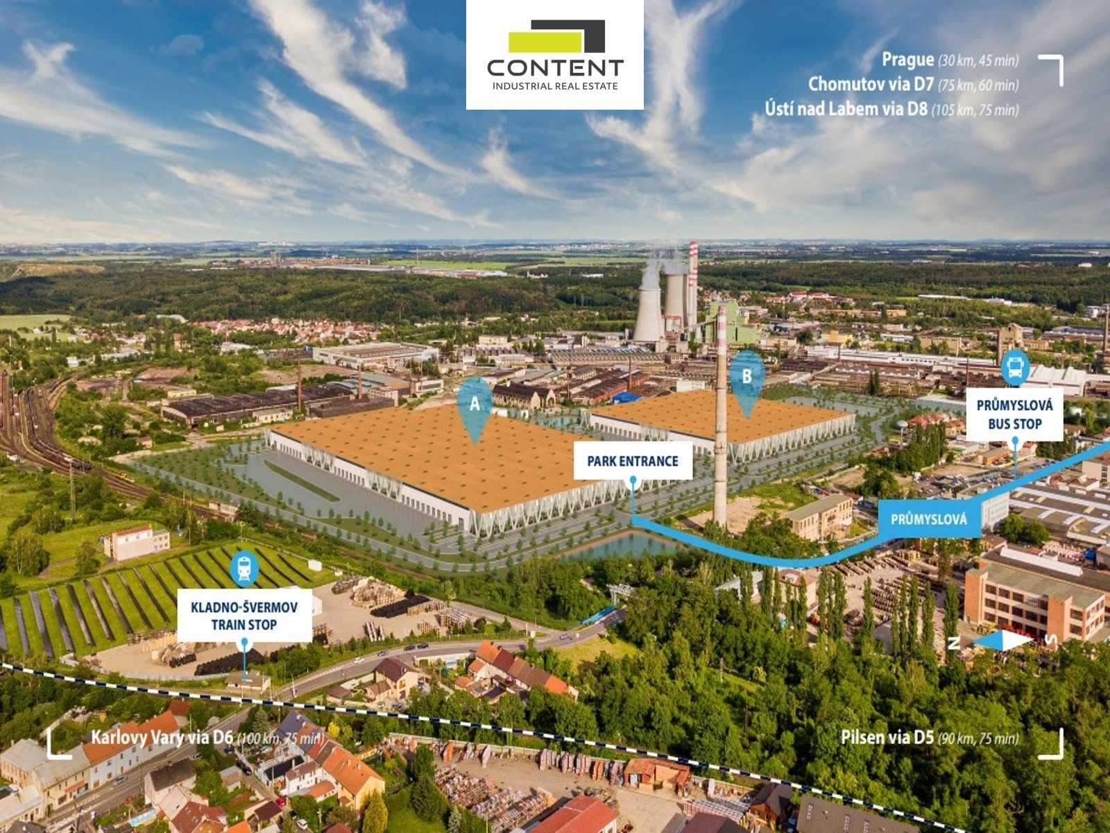 V zastoupení majitele a bez provize nabízíme novostavbu výrobních nebo skladových prostor o velikosti až 32855 m², umístěných v nově vznikajícím areálu nedaleko dálnice D6 a D7.
