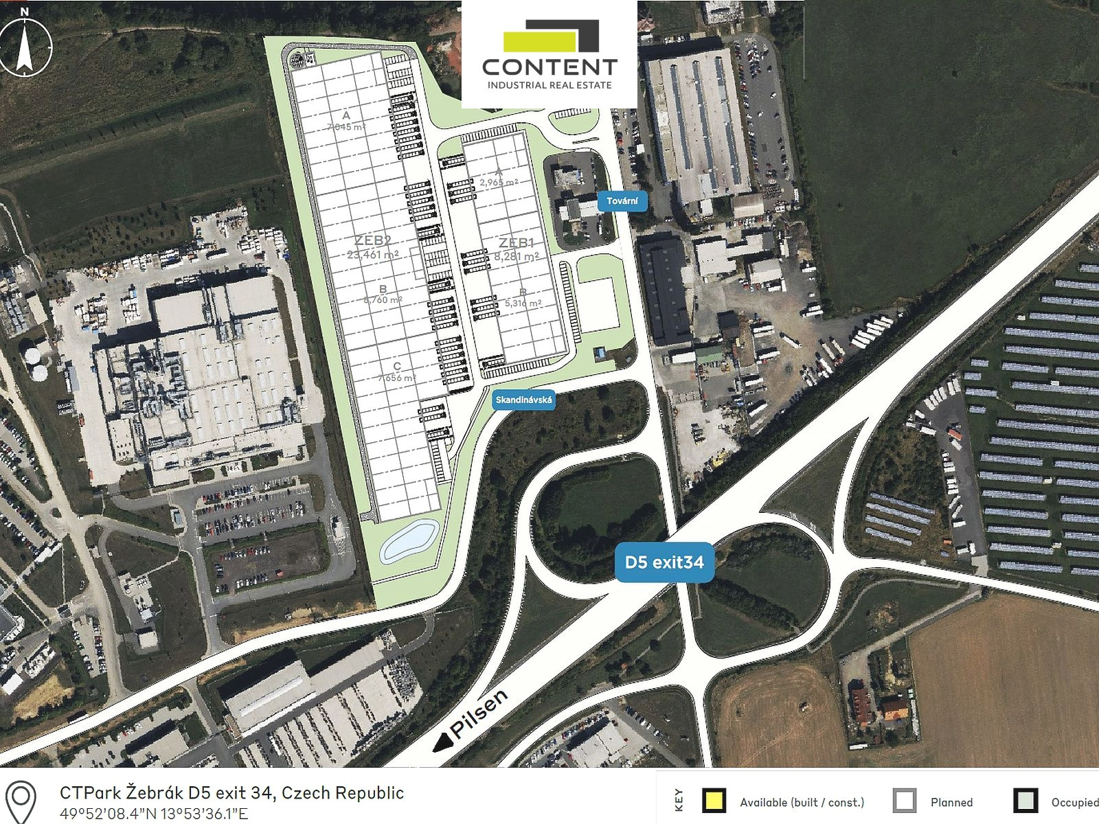 V zastoupení majitele a bez provize nabízíme industriální prostory vhodné pro sklad nebo výrobu 5316 m² v nově vznikajícím průmyslovém areálu v dálnice D5, exit 34.