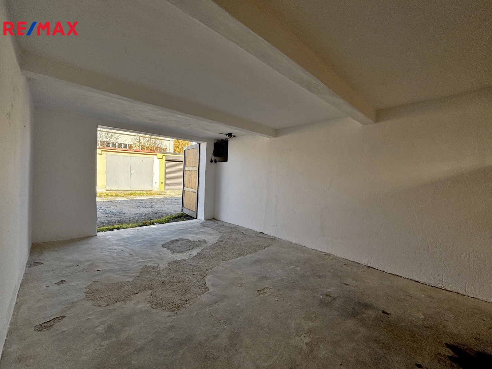 Suchá, udržovaná garáže leží na pozemku o zastavěné ploše 18 m2, je do ní zavedena přípojka elektřiny, pronajímá se vyklizená.