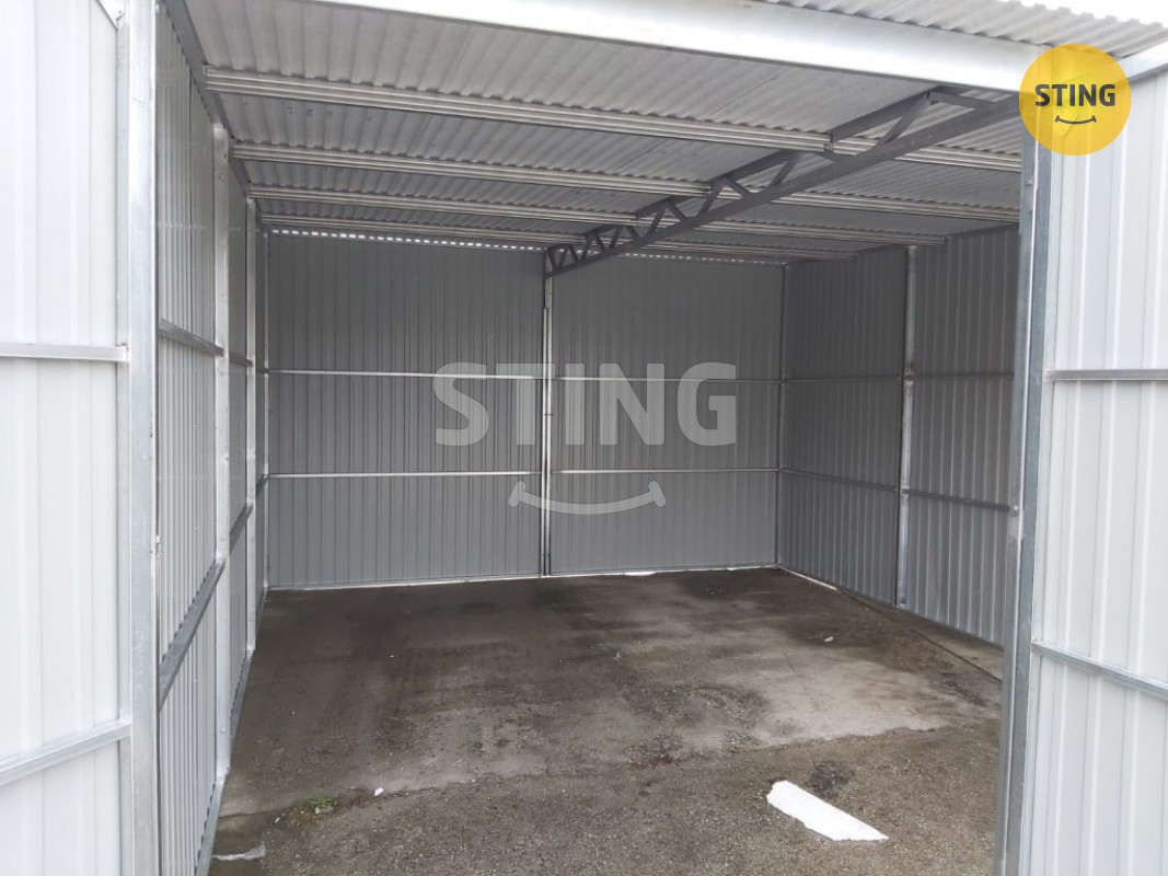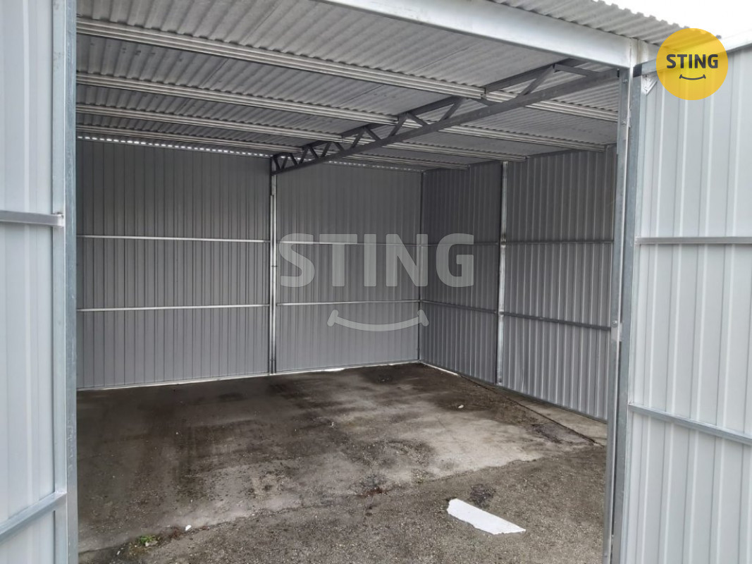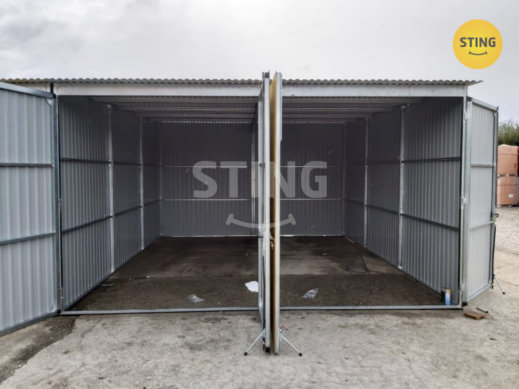 Nabízíme k pronajmu plechovou dvojgaráž/sklad o výměře 30 m2. Vhodné k parkování vozidel včetně dodávek a karavanů nebo ke skladování materiálu. Areál je zabezpečen kamerovým systémem. Rozměry jsou 5 m x 6 m a výška vrat 2,6 m. U garáže je k dispozici el. přípojka. V případě nezbytné potřeby je možnost odběru elektrické energie 230/400V. (např. dobytí baterie a pod.) Příjezd je po dlážděné cestě pronajímatele. Vratná kauce. Provizi RK hradí zájemce o pronájem.