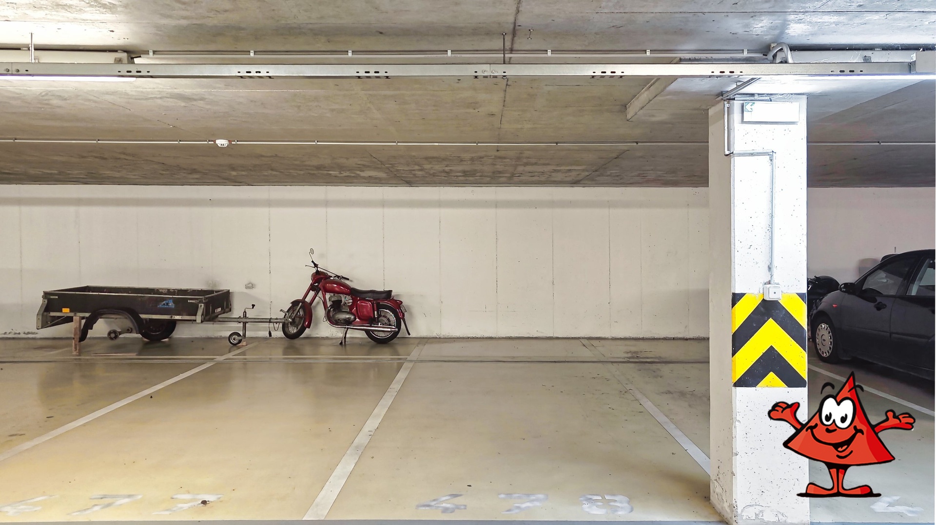 Pronájem nadstandardně vekého garážového stání (prodloužené s možností za autem parkovat vozík nebo motorku) v suterénu bytového domu v Troji na sídlišti Bohnice, v ulici Hnězdenská, přímo u obchodního centra Krakov. Šířka stání je 2,3 metru, délka 7,1 metru, povolená výška je 2,1 metru.Garážové stání je možné převzít kdykoli v průběhu listopadu.Nájemné 2.000 Kč vč. poplatků za energie a služby. Jistota a provize ve výši jednoho měsíčního nájemného.